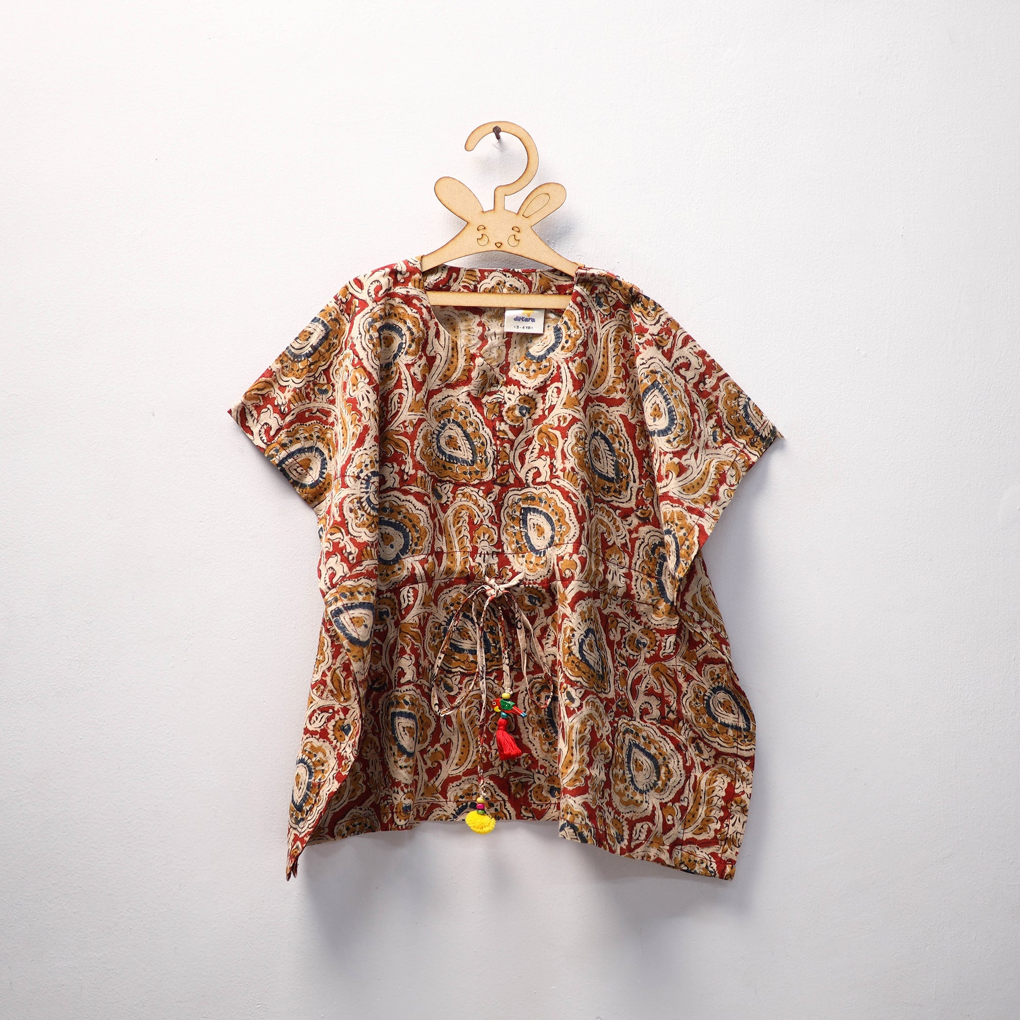 • Red - kalamkari cotton kids kaftan (3-4 years) 51