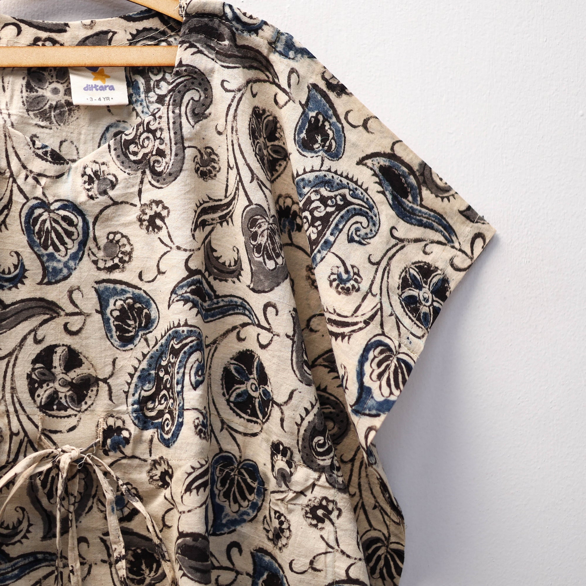 • Beige Kalamkari Block Print Cotton Kids Kaftan (3-4 Years)