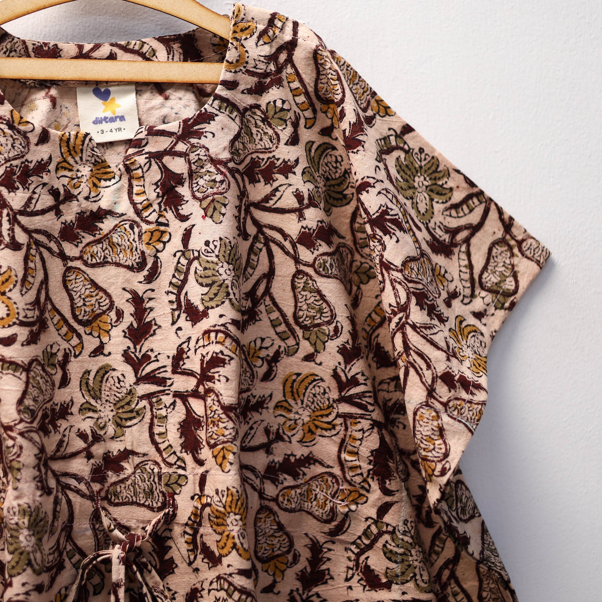Brown - Kalamkari Block Print Cotton Kids Kaftan (3-4 Years) 58