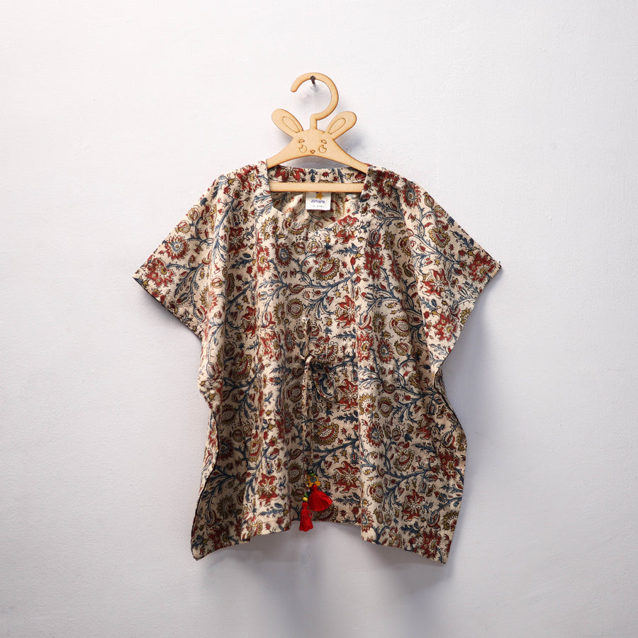 Beige - Kalamkari Block Print Cotton Kids Kaftan (3-4 Years) 78