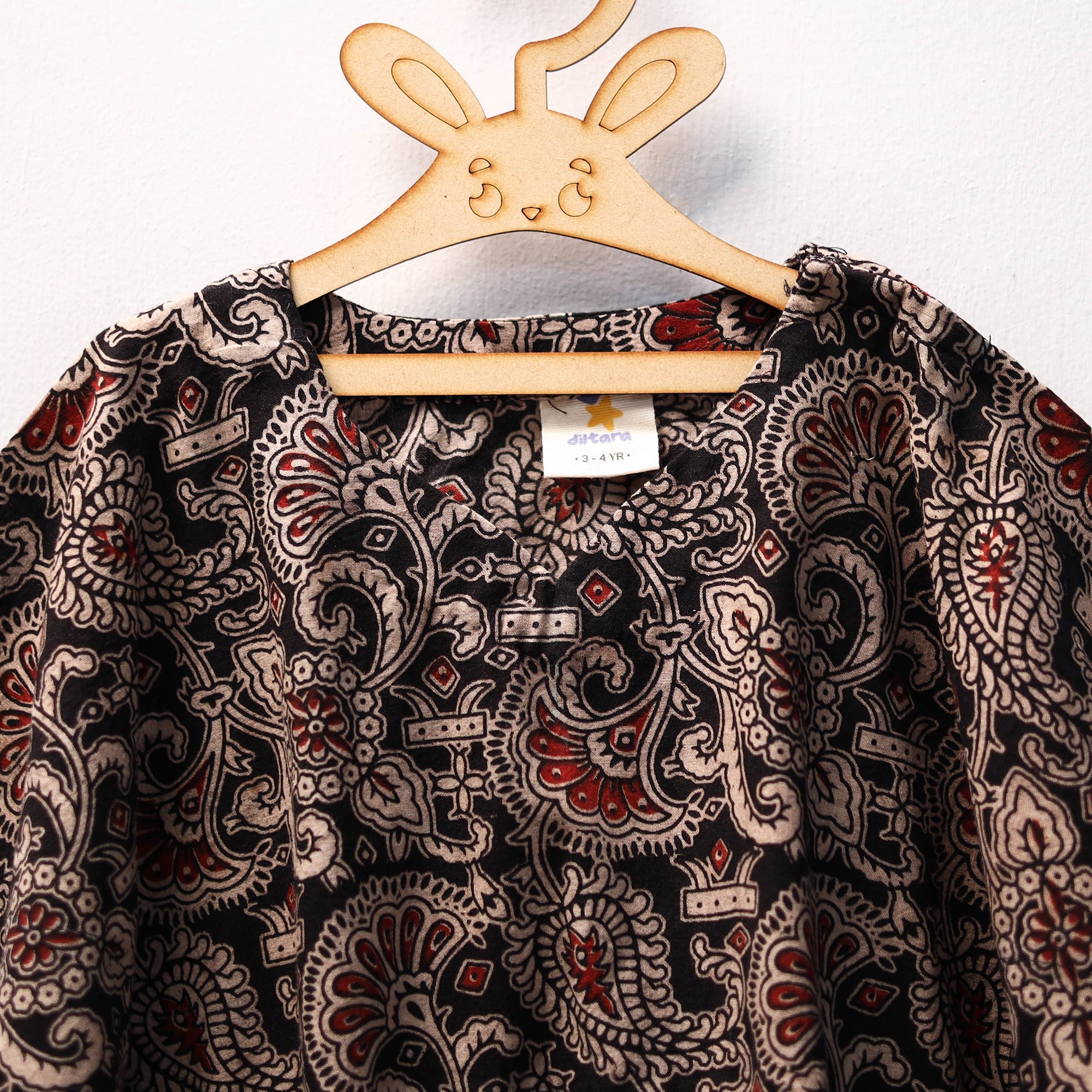Black - Kalamkari Block Print Cotton Kids Kaftan (3-4 Years) 82