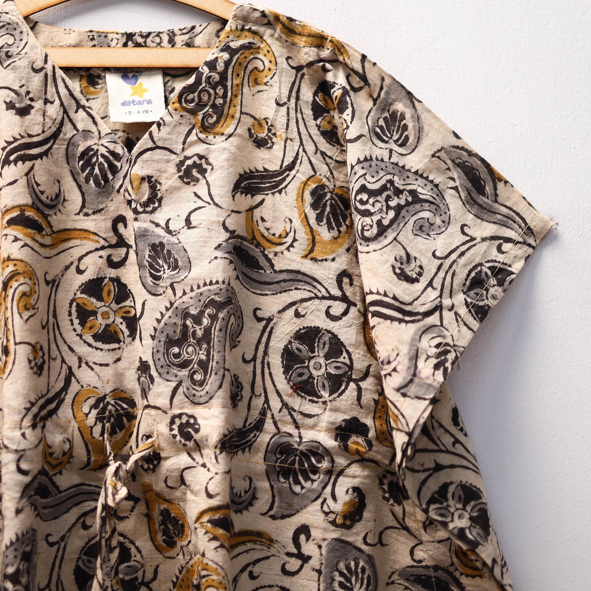 Beige - Kalamkari Block Print Cotton Kids Kaftan (3-4 Years) 86