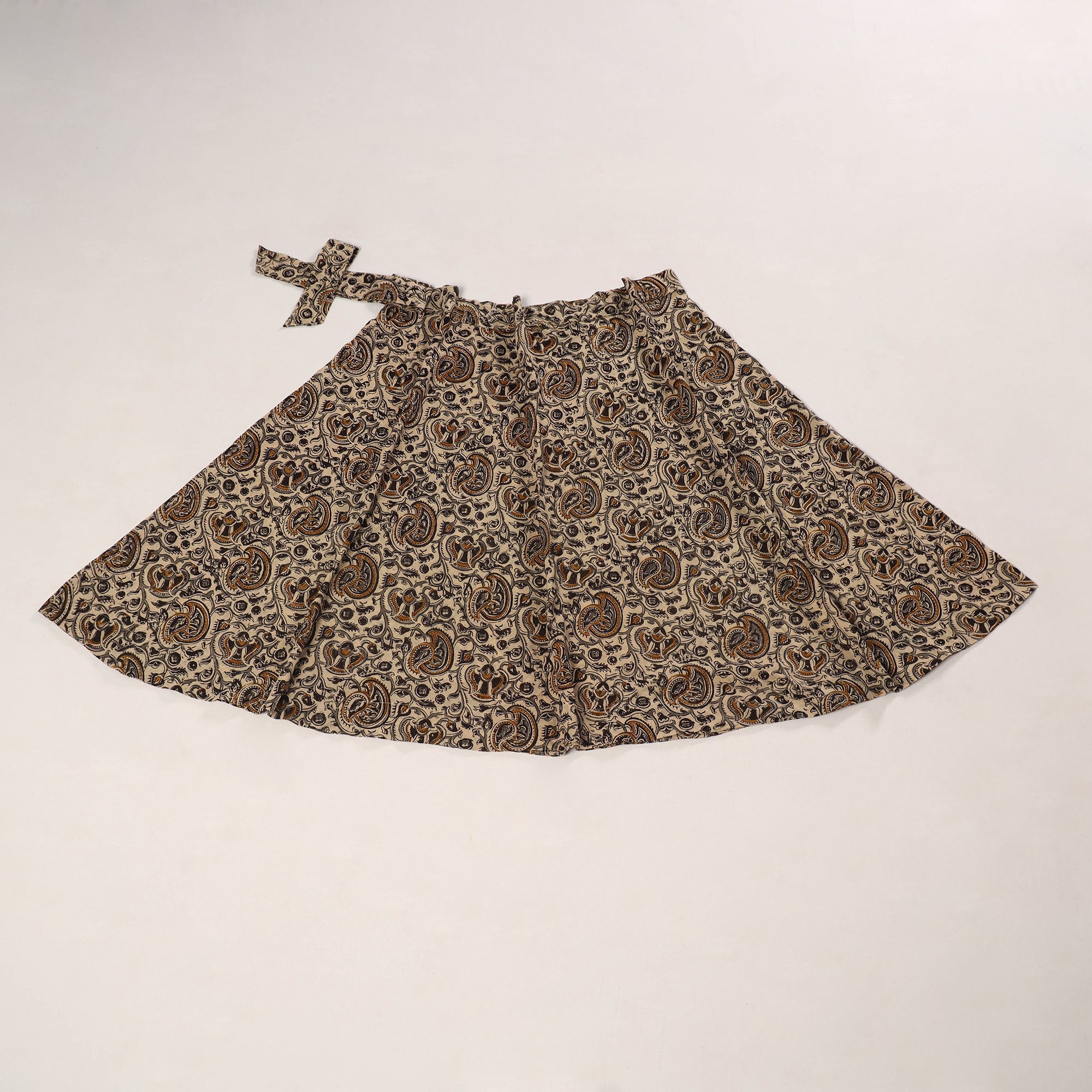 Add charm to your wardrobe with this beige kalamkari block print cotton wrap-around skirt. Designed with a tie-up waist closure, it combines everyday comfort with ethnic grace. Showcasing hand block-printed motifs inspired by traditional kalamkari art, this skirt is perfect for daily wear, vacations, or relaxed festive styling.