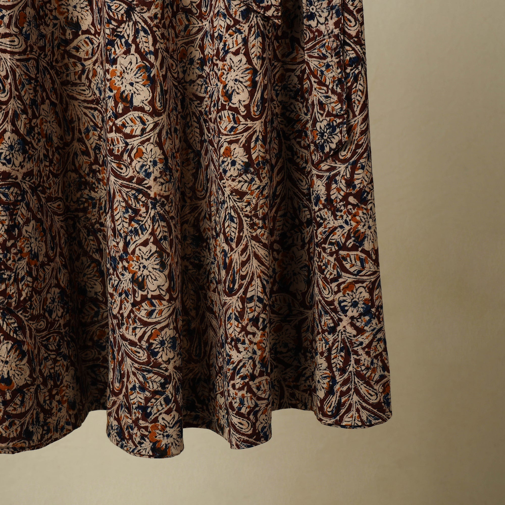 | Material | Add charm to your wardrobe with this maroon kalamkari block print cotton wrap-around skirt. Designed with a tie-up waist closure, it combines everyday comfort with ethnic grace. Showcasing hand block-printed motifs inspired by traditional kalamkari art, this skirt is perfect for daily wear, vacations, or relaxed festive styling. |