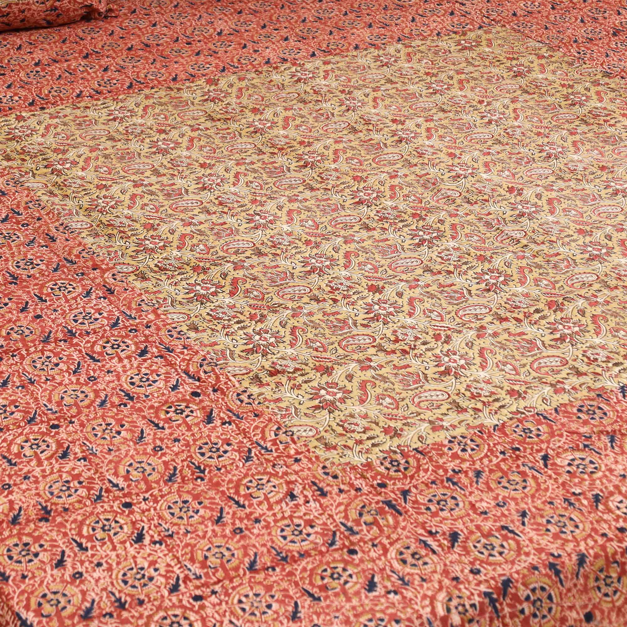 Orange - Kalamkari Block Print Patchwork Cotton Bedsheet Set 52