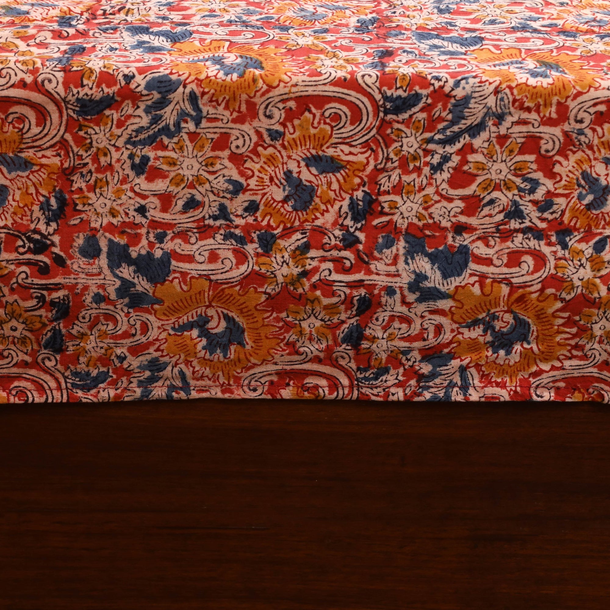 Orange pure cotton bedsheet set features a beautiful blend of kalamkari block print patchwork, combining traditional artistry with a modern touch. Made from breathable cotton, it offers lasting comfort and everyday durability. The detailed patchwork design adds a charming, artisanal feel to your space. The set includes one double bedsheet and two matching pillow covers, perfect for enhancing your home decor.