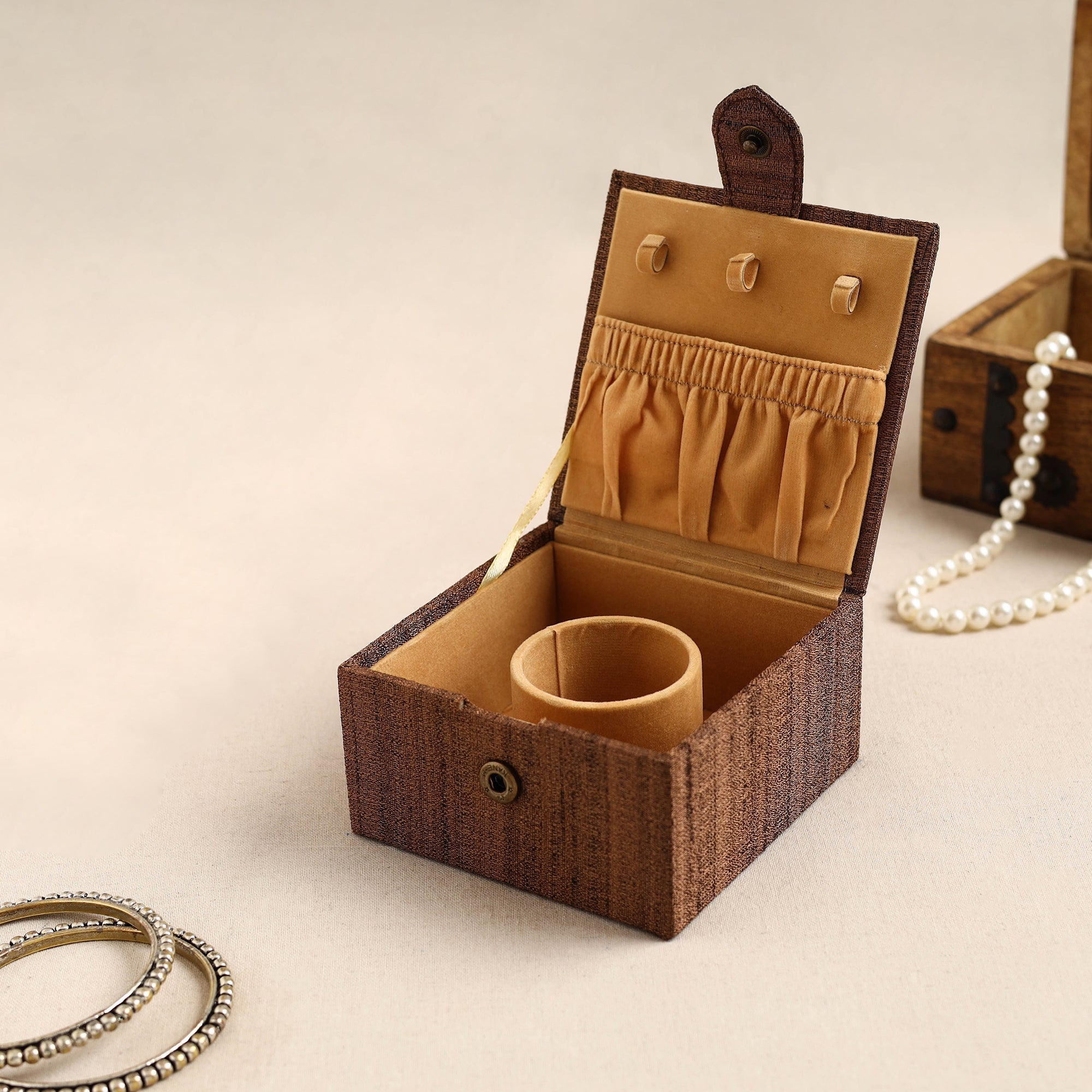 Organize your bangles in style with our "Bamboo Kalam’s" brown kalamkari handpainted ghicha silk bangle box. This exquisite jewelry box is made from craft board and emblished with natural dyed cotton & ghicha silk fabric. Soft velvet fabric is used inside this jewelry box which protects your precious jewelry from scratches and breakage. This elegant storage box blends traditional artistry with practical utility, perfect for keeping your precious bangles safe and organized. Featuring intricate kalamkari designs, it highlights the timeless craftsmanship of Indian artisans. Add a touch of your dressing space.