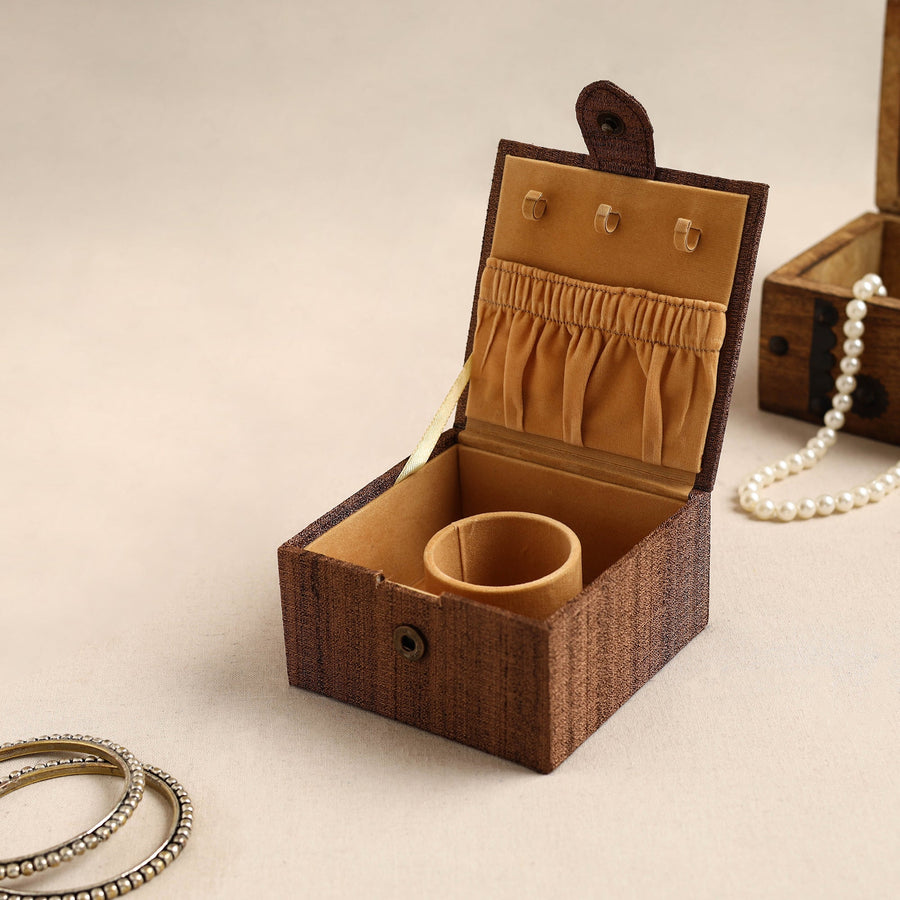 Organize your bangles in style with our "Bamboo Kalam’s" brown kalamkari handpainted ghicha silk bangle box. This exquisite jewelry box is made from craft board and emblished with natural dyed cotton & ghicha silk fabric. Soft velvet fabric is used inside this jewelry box which protects your precious jewelry from scratches and breakage. This elegant storage box blends traditional artistry with practical utility, perfect for keeping your precious bangles safe and organized. Featuring intricate kalamkari designs, it highlights the timeless craftsmanship of Indian artisans. Add a touch of your dressing space.