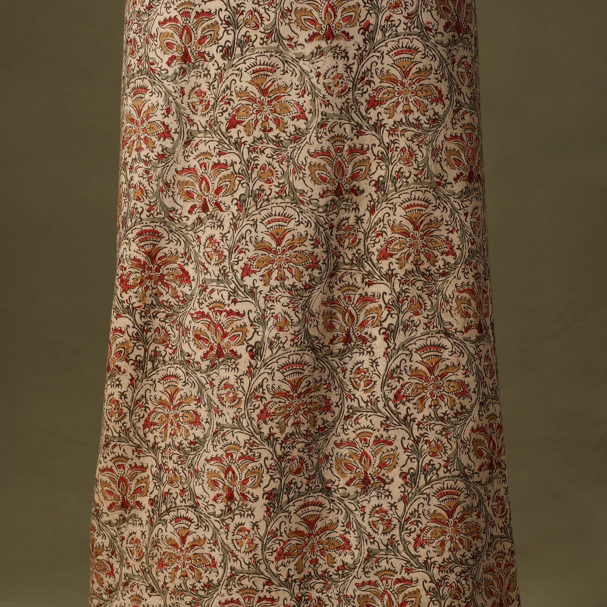 Kalamkari is a type of hand-painted or printed cotton fabric produced in Andhra Pradesh. This is a traditional printing method on cotton fabrics using natural materials without adding chemicals to cotton fabrics.