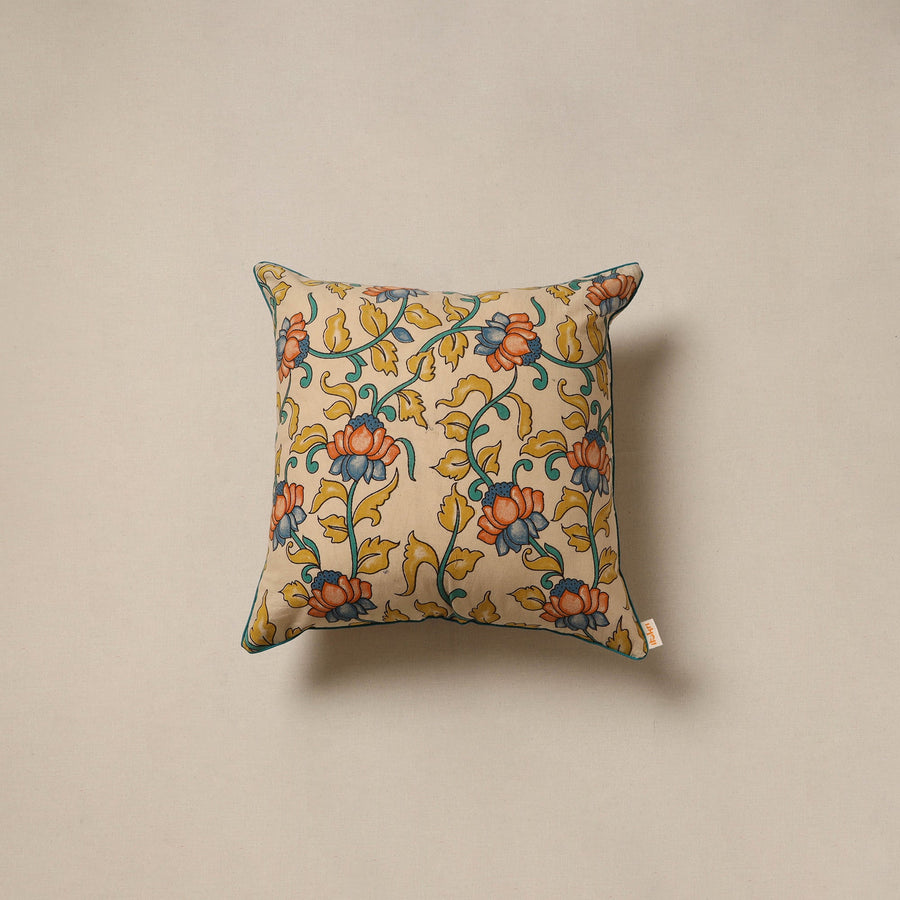 Kalamkari print cushion cover crafted from cotton, using screen printing techniques. It blends artistry with comfort, making it suitable for your sofa, bed, or lounge area.