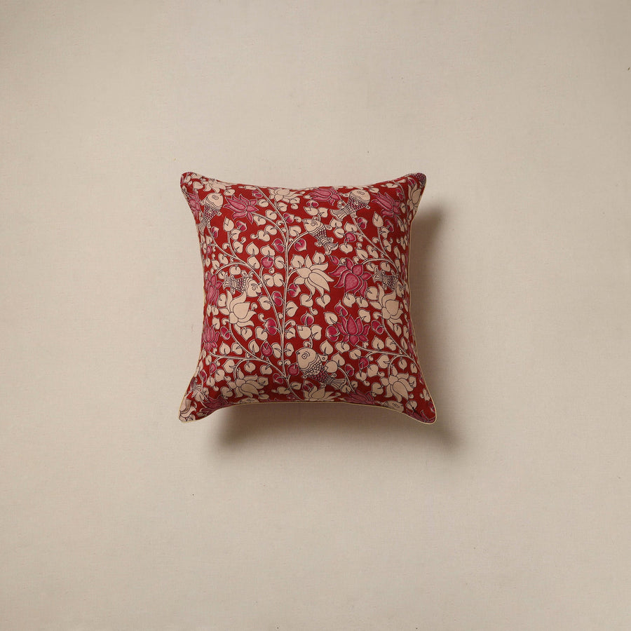Kalamkari print cushion cover crafted from cotton, using screen printing techniques. It blends artistry with comfort, making it suitable for your sofa, bed, or lounge area.