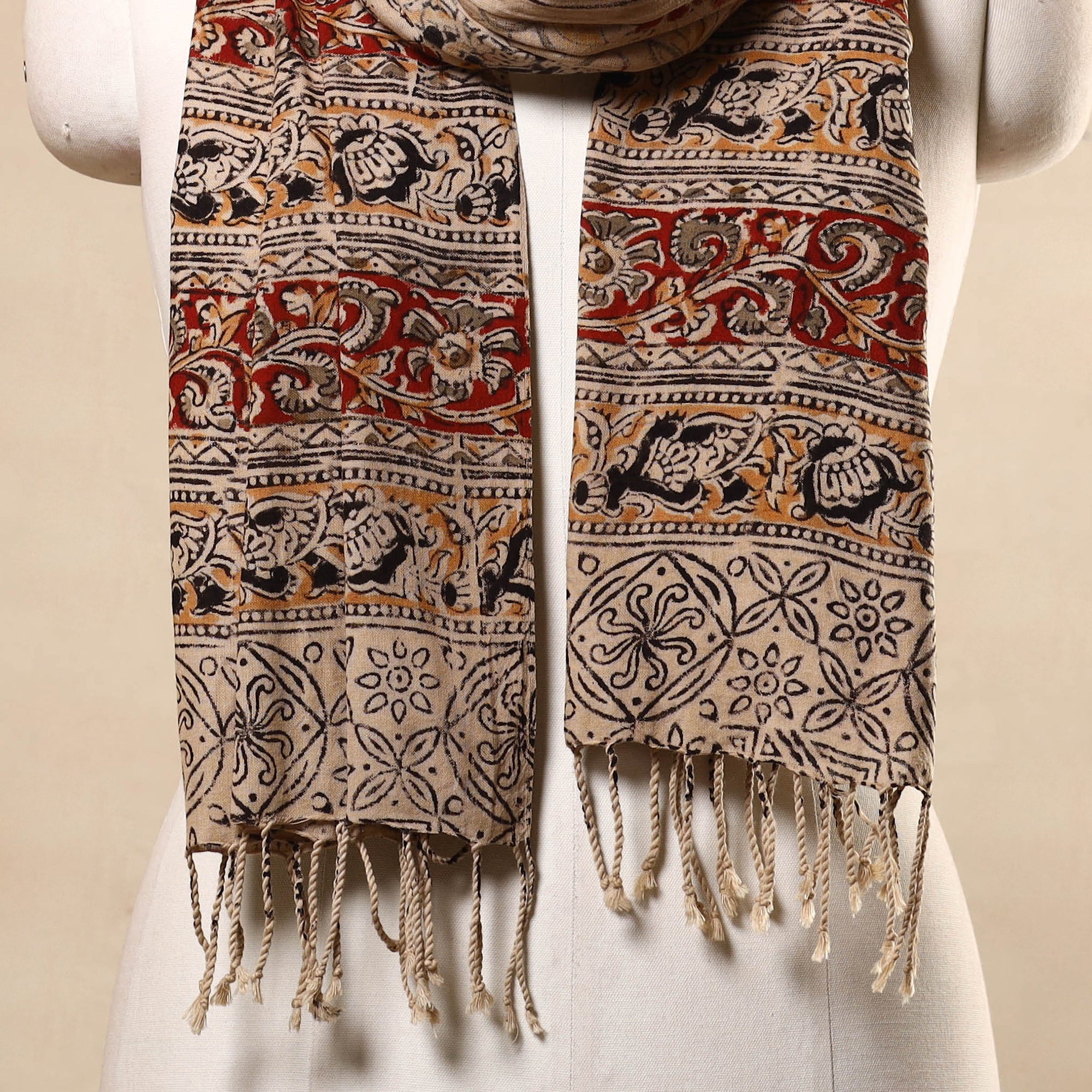 • Beige Kalamkari Print Handloom Cotton Mangalagiri Stole