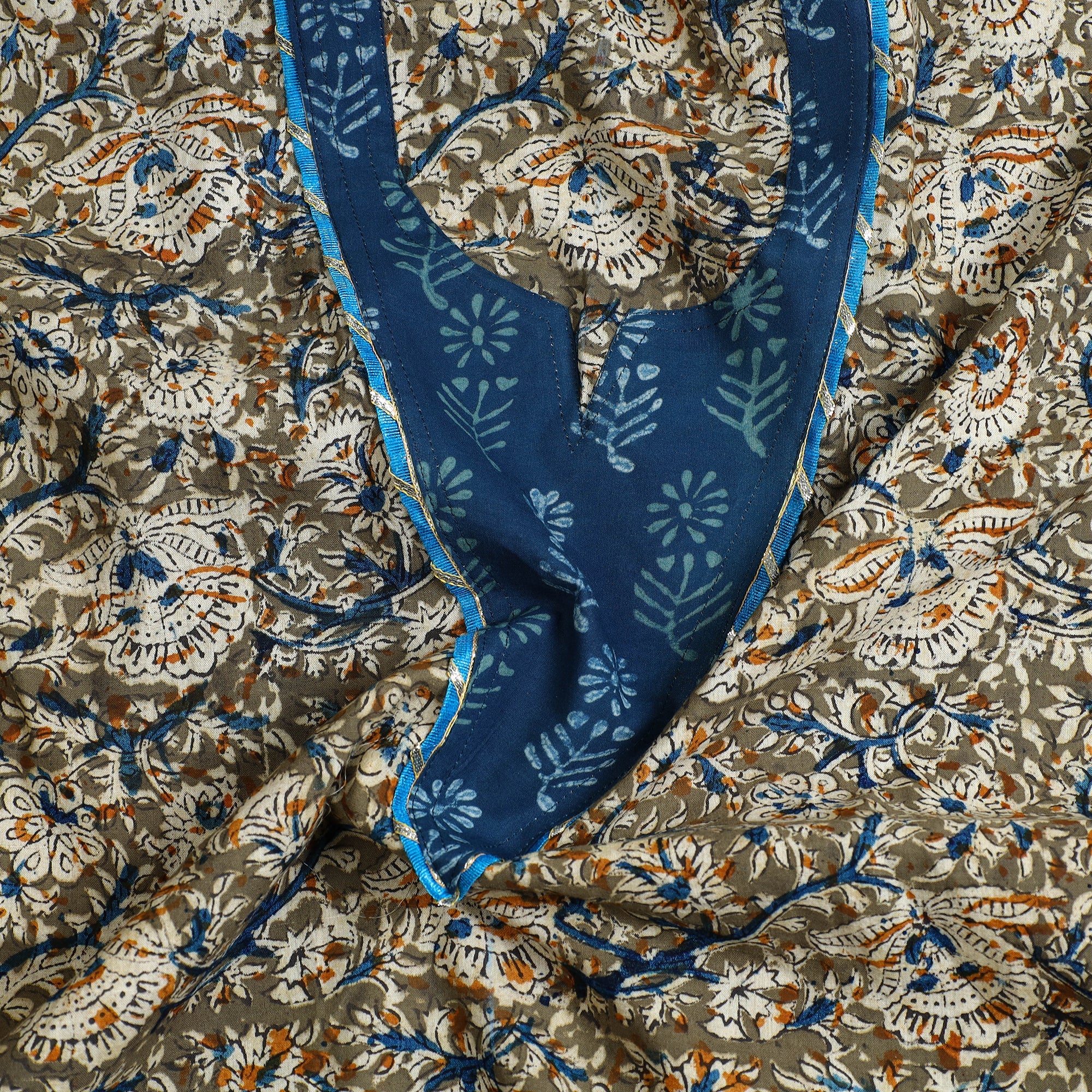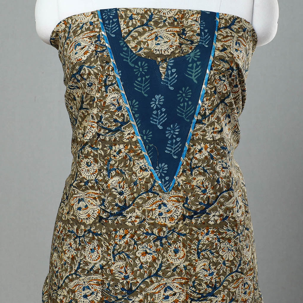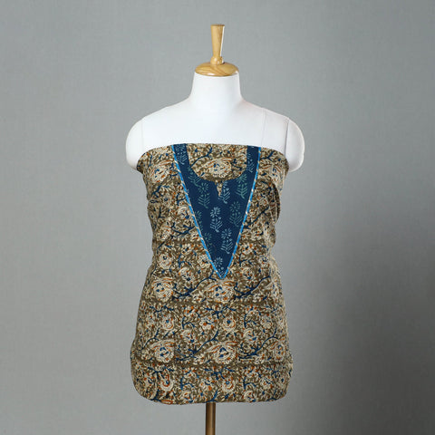 Enhance your wardrobe with our green kalamkari print patchwork cotton kurta material, made using traditional kalamkari hand block printing techniques, this kalamkari cotton kurta material with patchwork is a perfect blend of tradition and style.