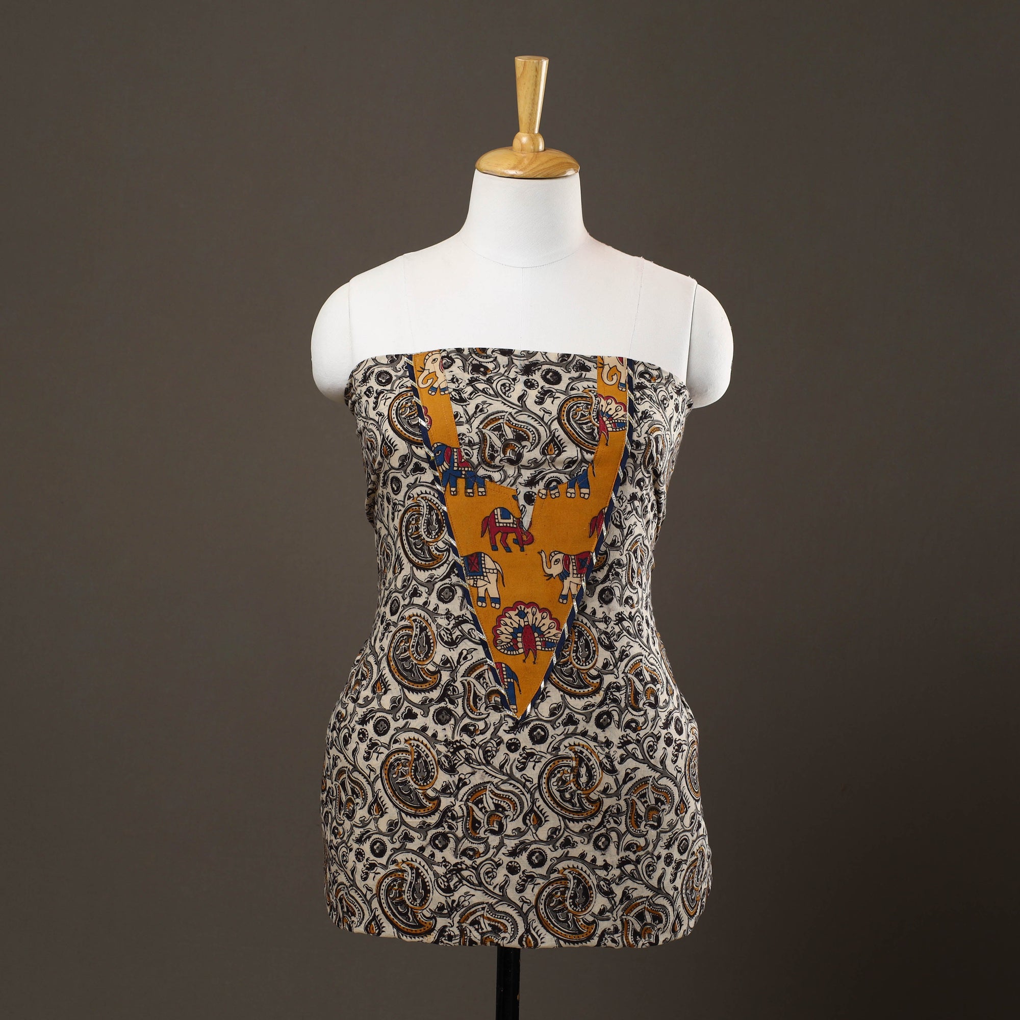 Enhance your wardrobe with our kalamkari print patchwork cotton kurta material, made using traditional kalamkari hand block printing techniques, this kalamkari cotton kurta material with patchwork is a perfect blend of tradition and style.