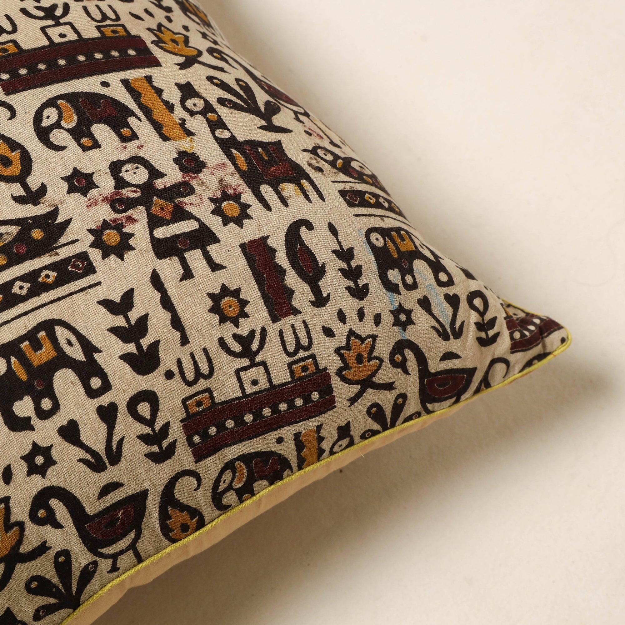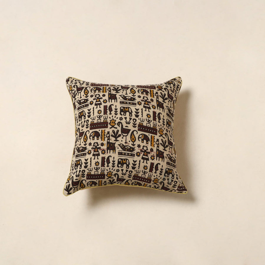 Beige - Kalamkari Printed Cotton Cushion Cover 56