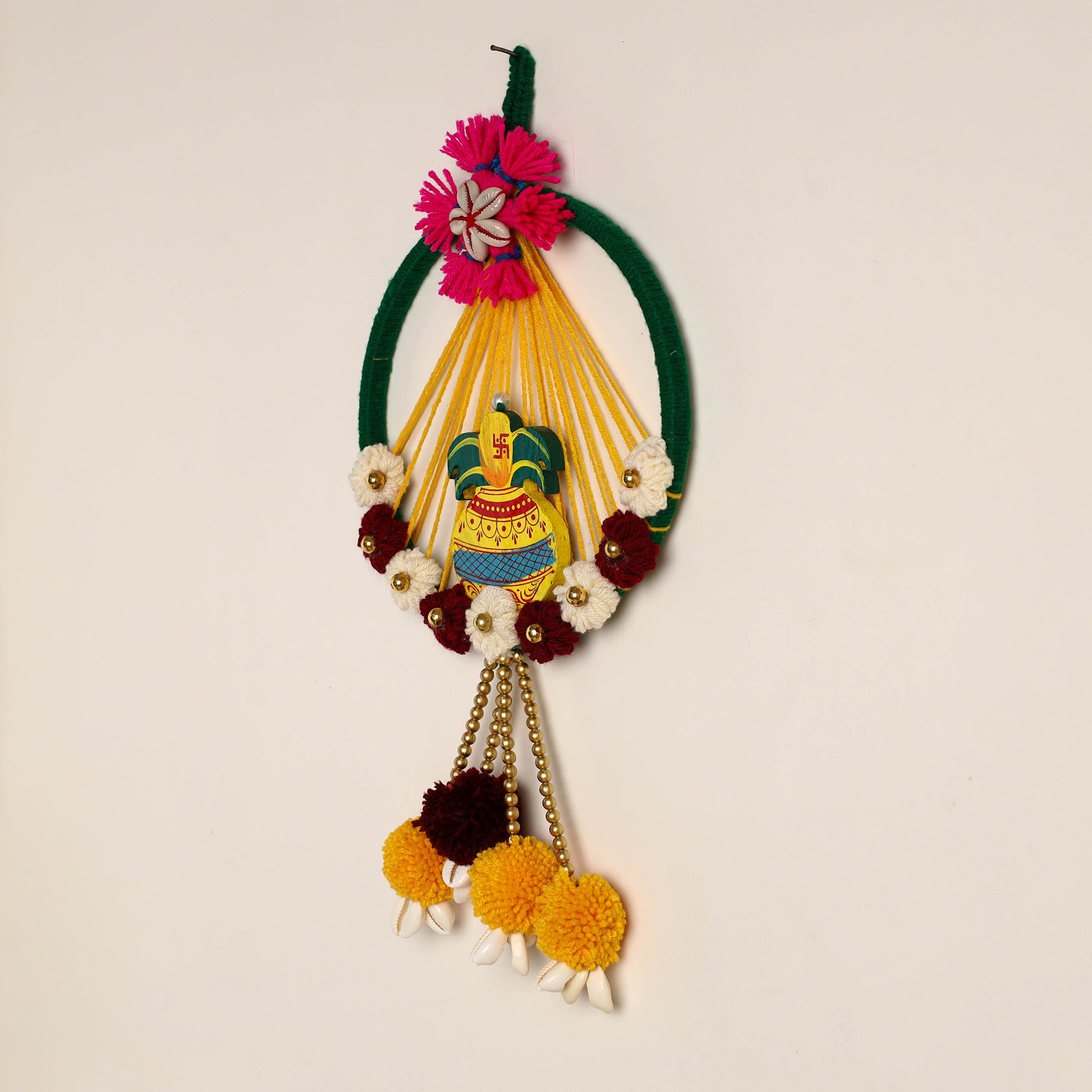 | Material | Bring tradition to your home with this handmade wool wall hanging/dream catcher. Adorned with delicate beads, colorful pompoms, and shells. Created by skilled artisans, this wall hanging reflects India's cultural heritage, blending timeless craft with contemporary design. Its elegant, handmade design brings cultural richness and blessings to your space. |