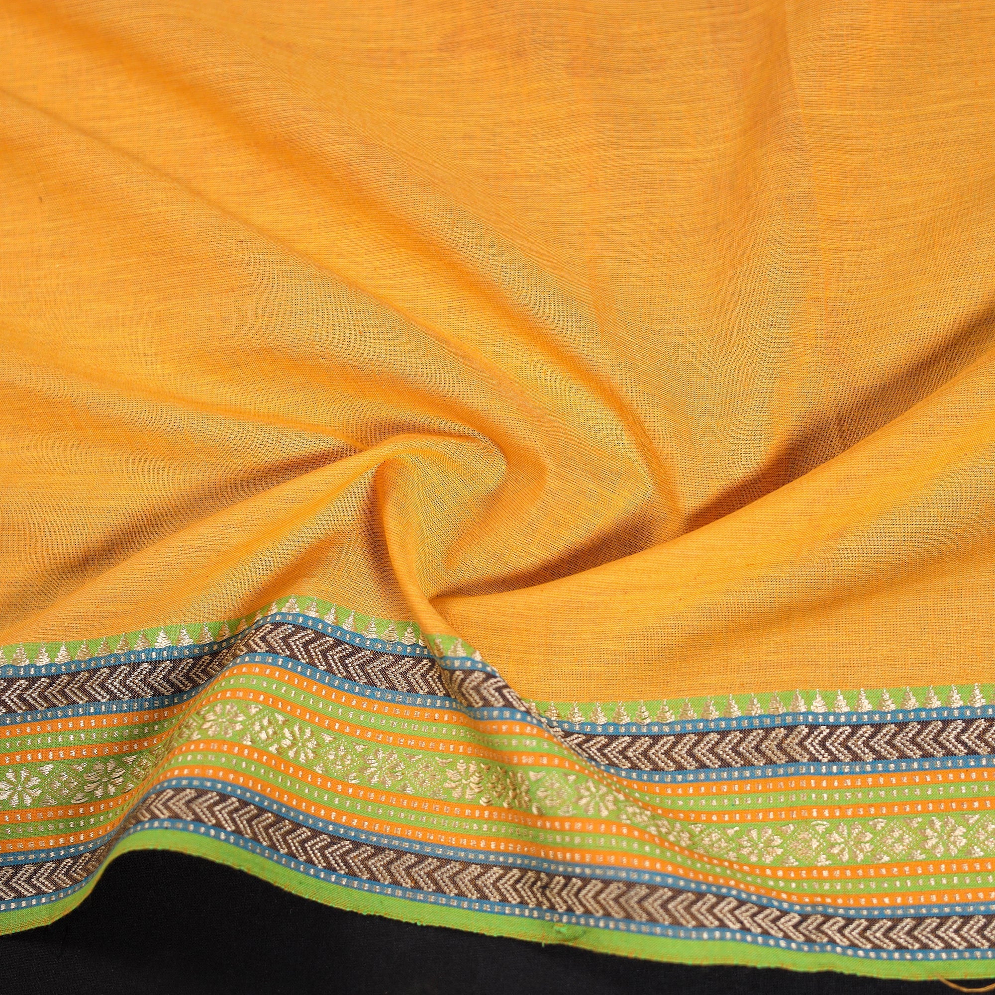 Yellow kanchipuram cotton blouse piece, woven from soft and breathable fabric, offers a perfect blend of comfort and ease. Known for its durability, it pairs effortlessly with sarees for both everyday wear and special occasions. Easy to tailor in your preferred style, it’s a dependable choice for creating elegant and versatile blouse designs.