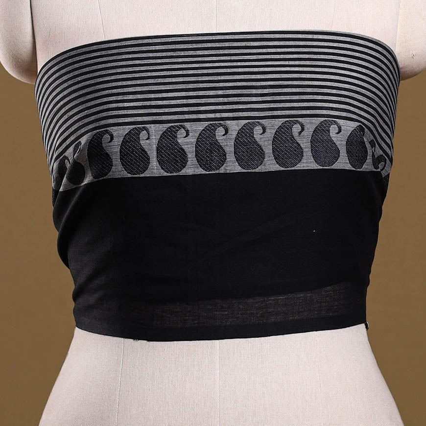 Black kanchipuram cotton blouse piece, woven from soft and breathable fabric, offers a perfect blend of comfort and ease. Known for its durability, it pairs effortlessly with sarees for both everyday wear and special occasions. Easy to tailor in your preferred style, it’s a dependable choice for creating elegant and versatile blouse designs.
