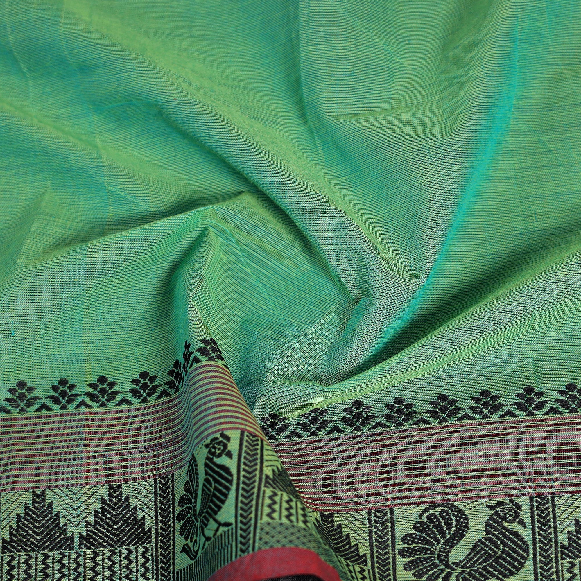 Green kanchipuram cotton blouse piece, woven from soft and breathable fabric, offers a perfect blend of comfort and ease. Known for its durability, it pairs effortlessly with sarees for both everyday wear and special occasions. Easy to tailor in your preferred style, it’s a dependable choice for creating elegant and versatile blouse designs.