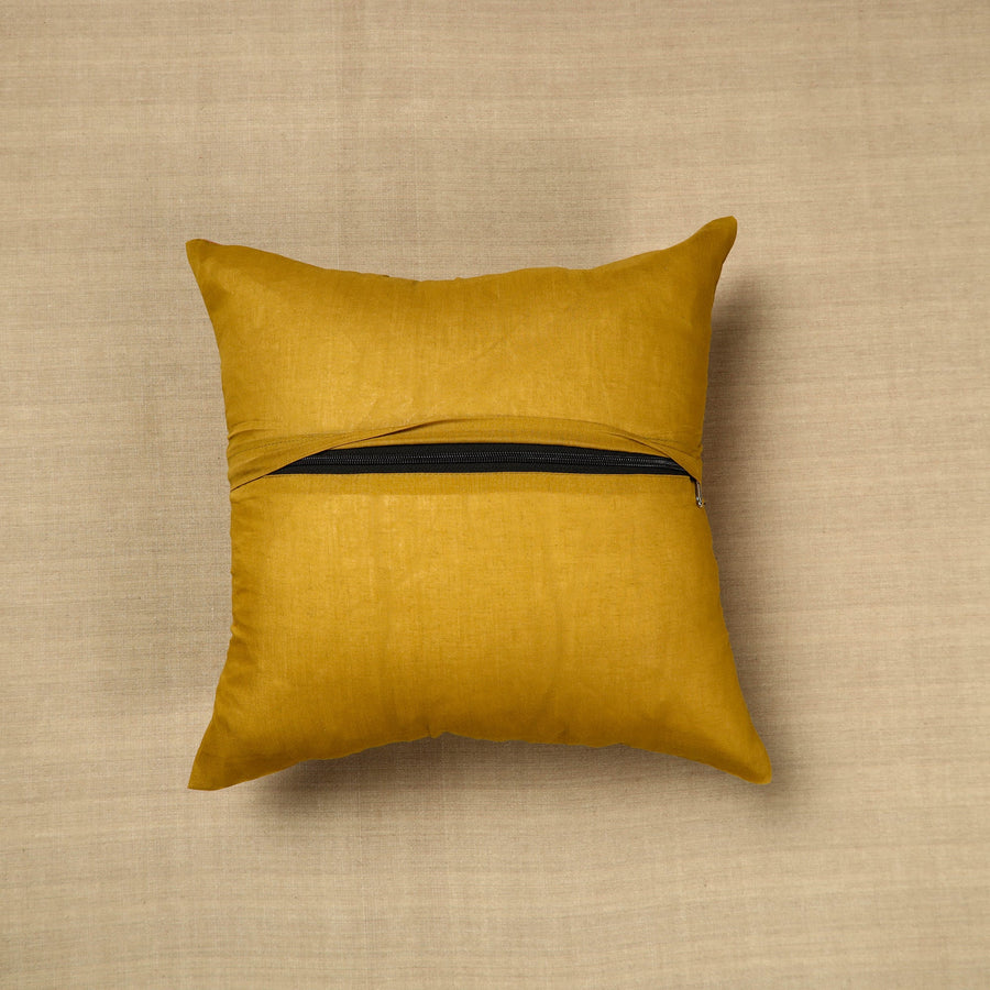 kanchipuram brown patchwork cushion cover in cotton. Designed with intricate patterns using age old techniques its lightweight, durable and ideal for daily use. Perfect for enhancing sofas, chairs, or beds, this cushion cover brings cultural elegance to your living space.