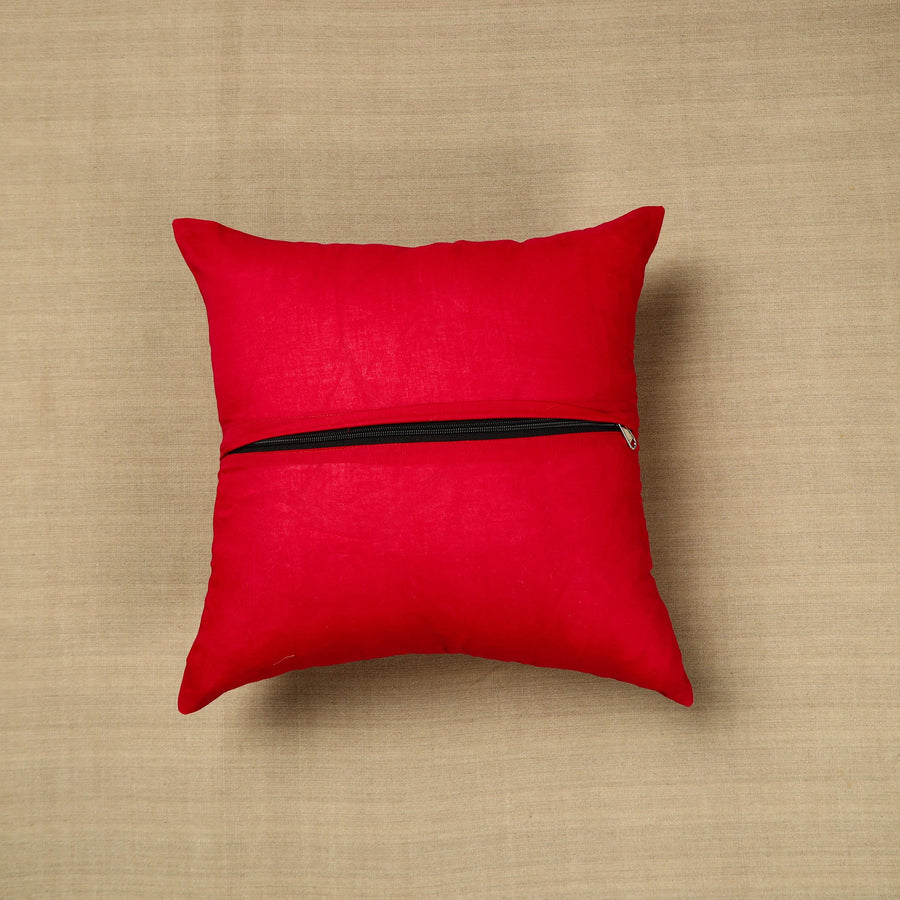 Red kanchipuram patchwork cushion cover in cotton. Designed with intricate patterns using age old techniques its lightweight, durable and ideal for daily use. Perfect for enhancing sofas, chairs, or beds, this cushion cover brings cultural elegance to your living space.