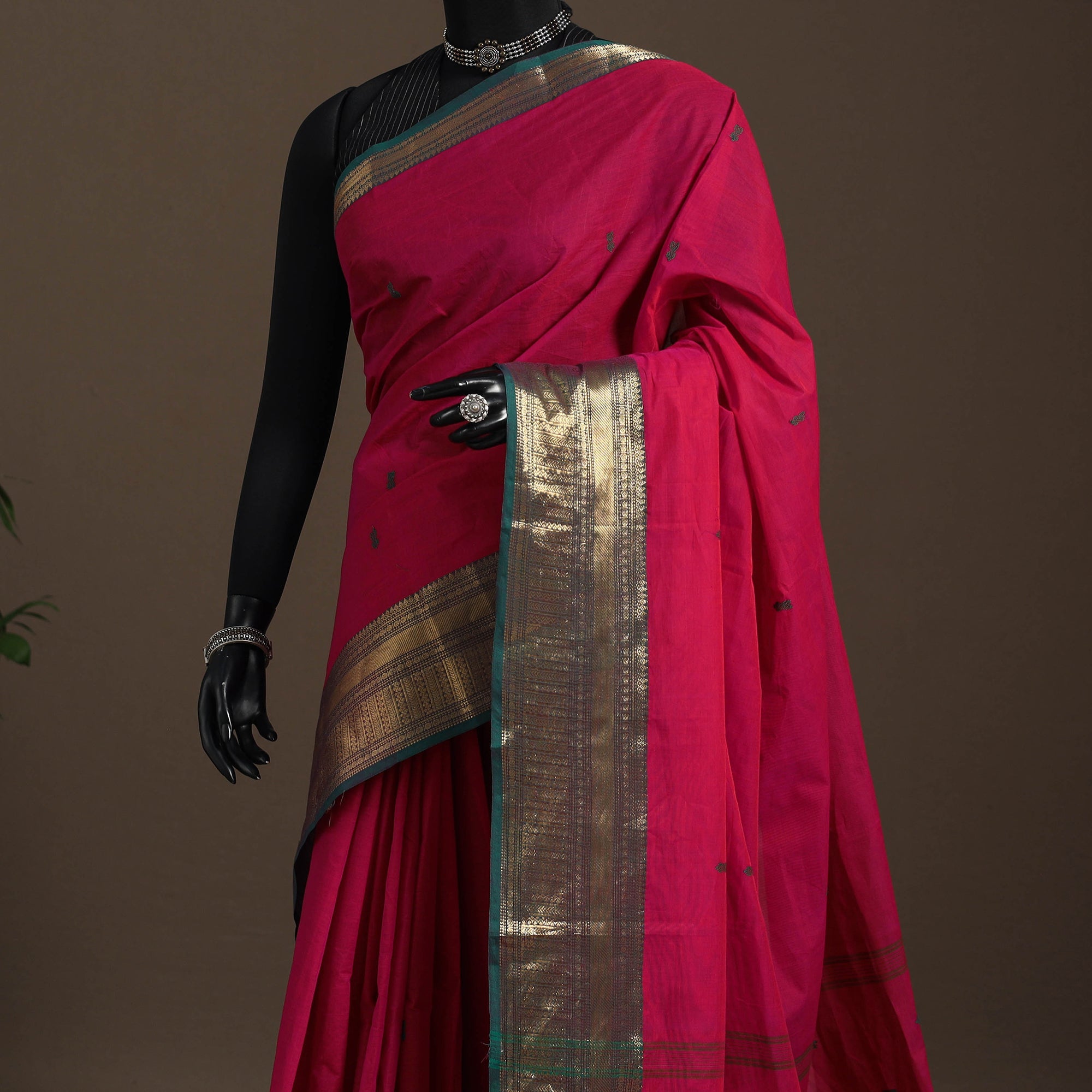 Pink - Kandangi Buti Chettinad Cotton Saree with Border 21