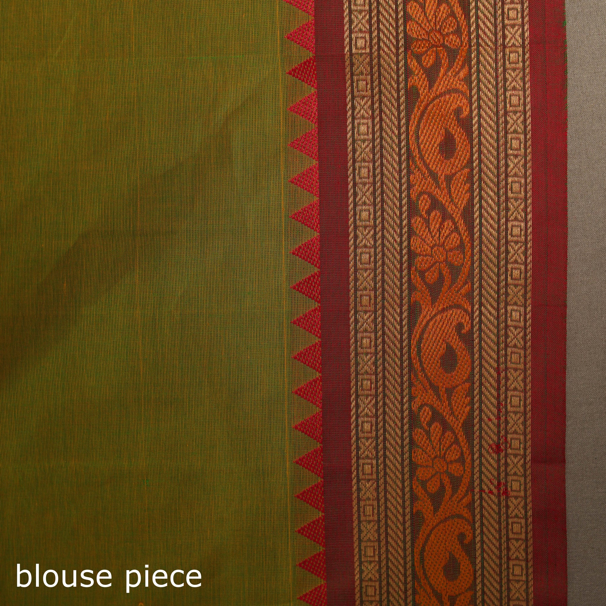 This green chettinad saree, also known as kandangi, reflects the traditional weaving heritage of Tamil Nadu. Woven from soft, breathable cotton, it features intricate thread buti motifs across the body. The contrasting border adds to its timeless appeal, making it ideal for everyday wear, office attire, or festive occasions.
