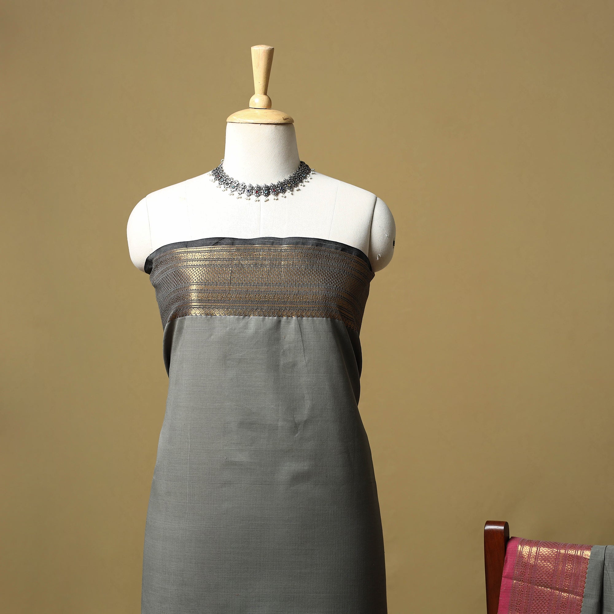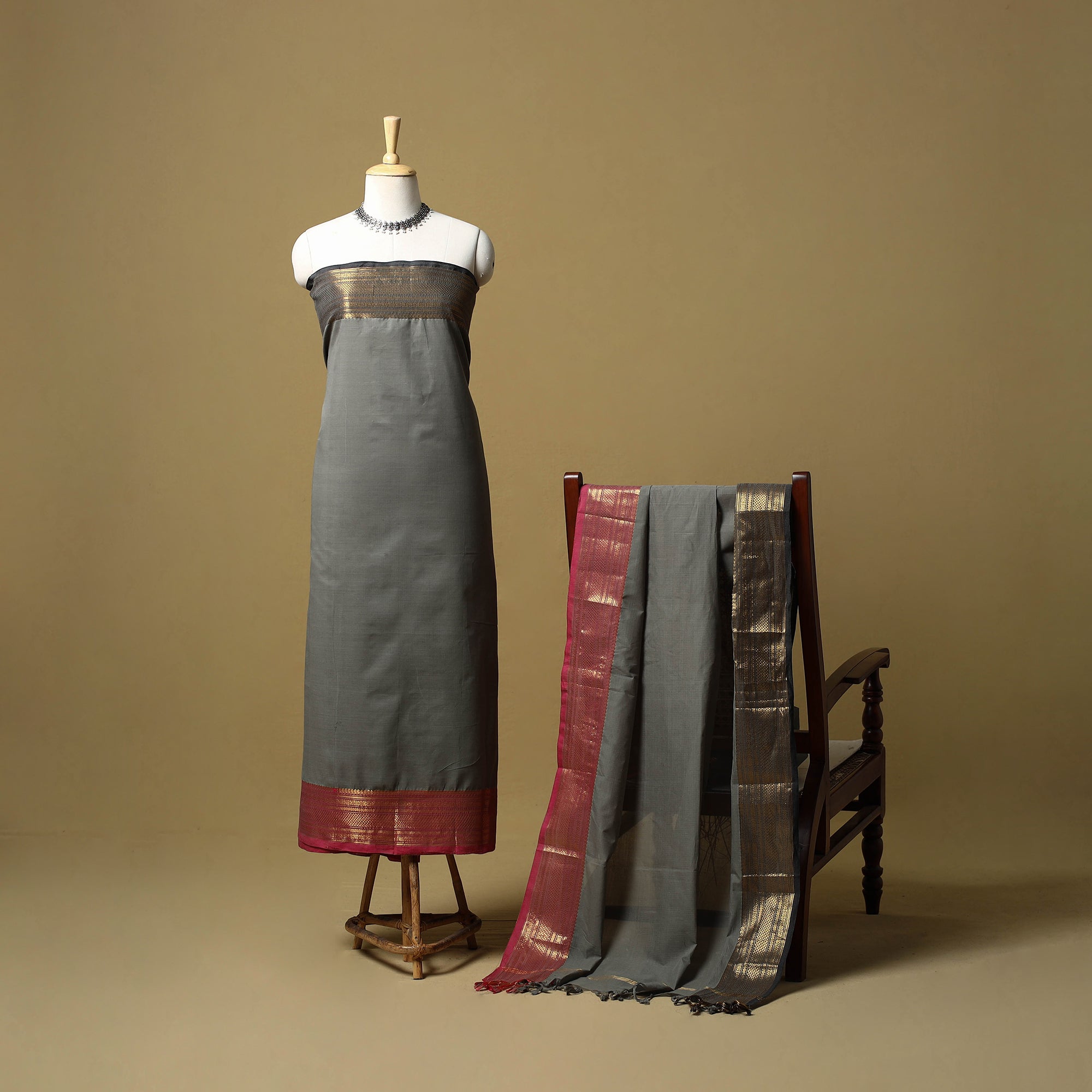 2pc kandangi chettinad 2pc unstitched dress material from Tamil Nadu is known for its traditional weaving techniques, contrasting border. The set includes a kurta fabric with a woven border, paired with a matching dupatta. Made from cotton, the set feels breathable and is suitable for daily wear, office use or even festive dressing.