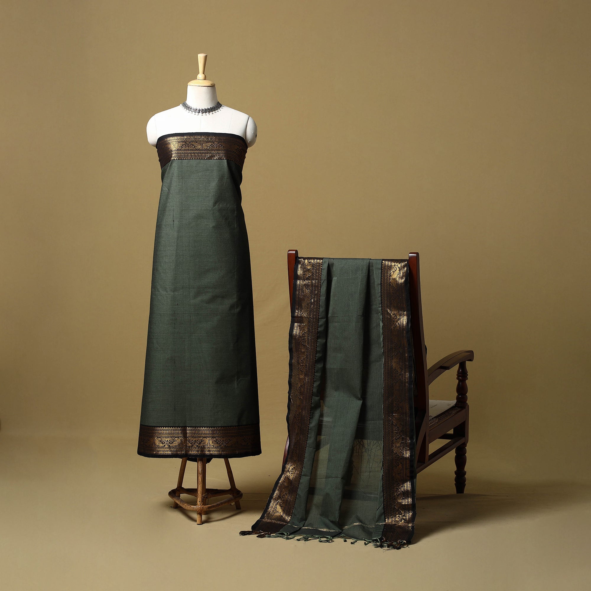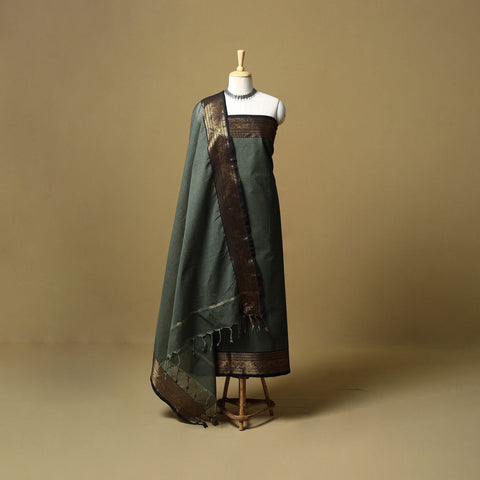 2pc kandangi chettinad 2pc unstitched dress material from Tamil Nadu is known for its traditional weaving techniques, contrasting border. The set includes a kurta fabric with a woven border, paired with a matching dupatta. Made from cotton, the set feels breathable and is suitable for daily wear, office use or even festive dressing.