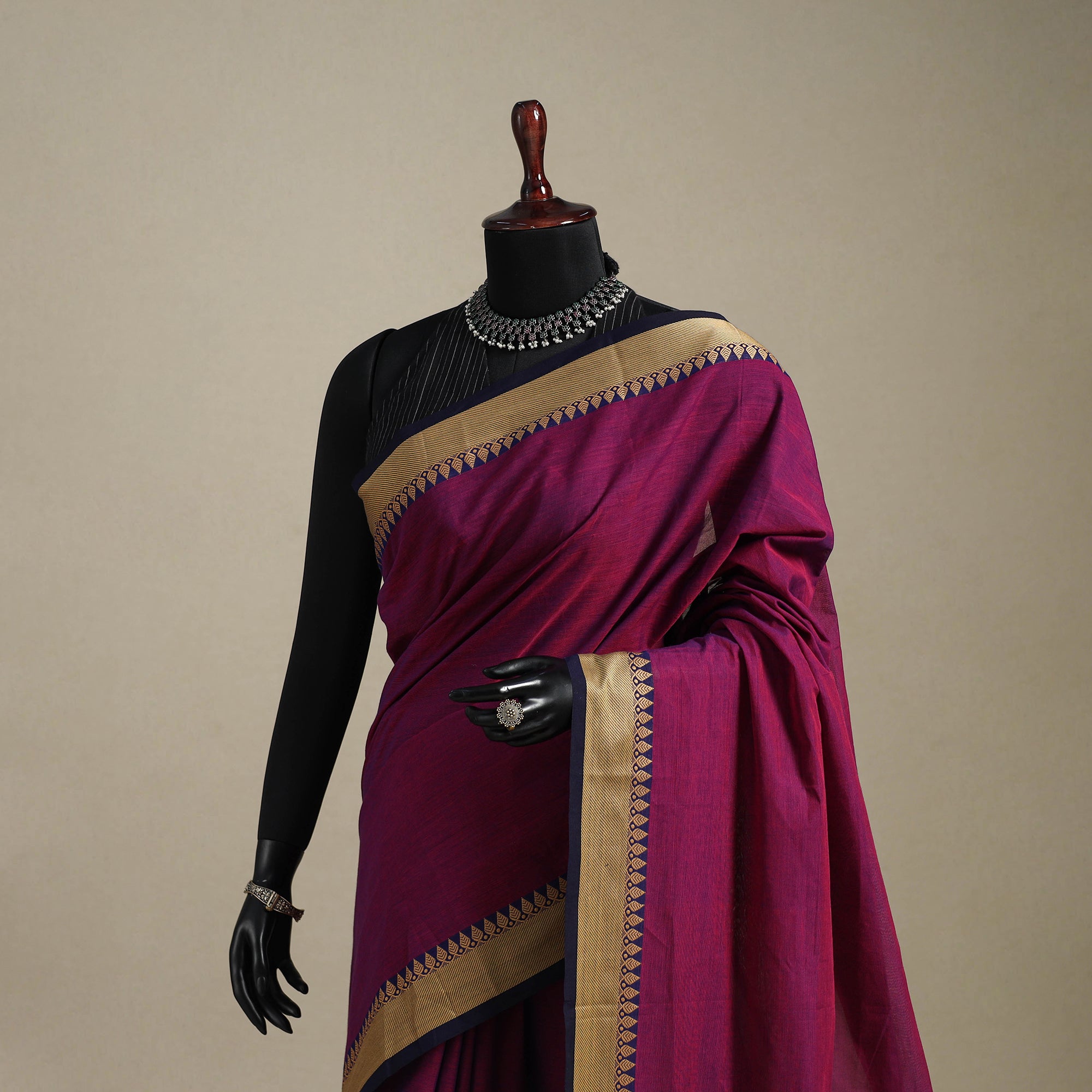 This purple kandangi chettinad cotton saree beautifully reflects Tamil Nadu’s textile heritage. Featuring traditional weaving and a subtle border, it blends elegance with comfort. Crafted from breathable cotton, it is perfect for daily wear, office outfits, or festive gatherings, offering a style that is both graceful and versatile.