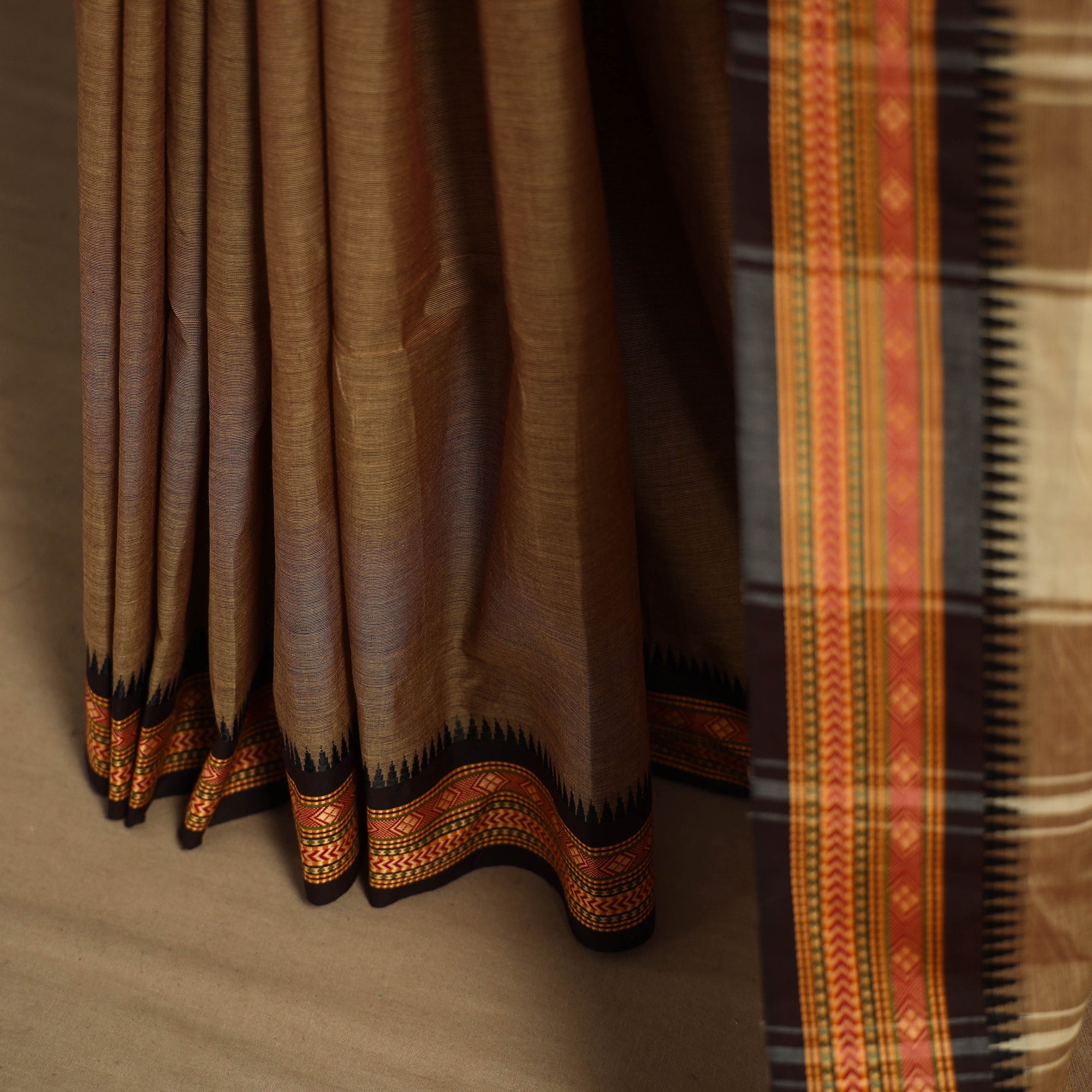 • Brown Kandangi Chettinad Cotton Saree with Border