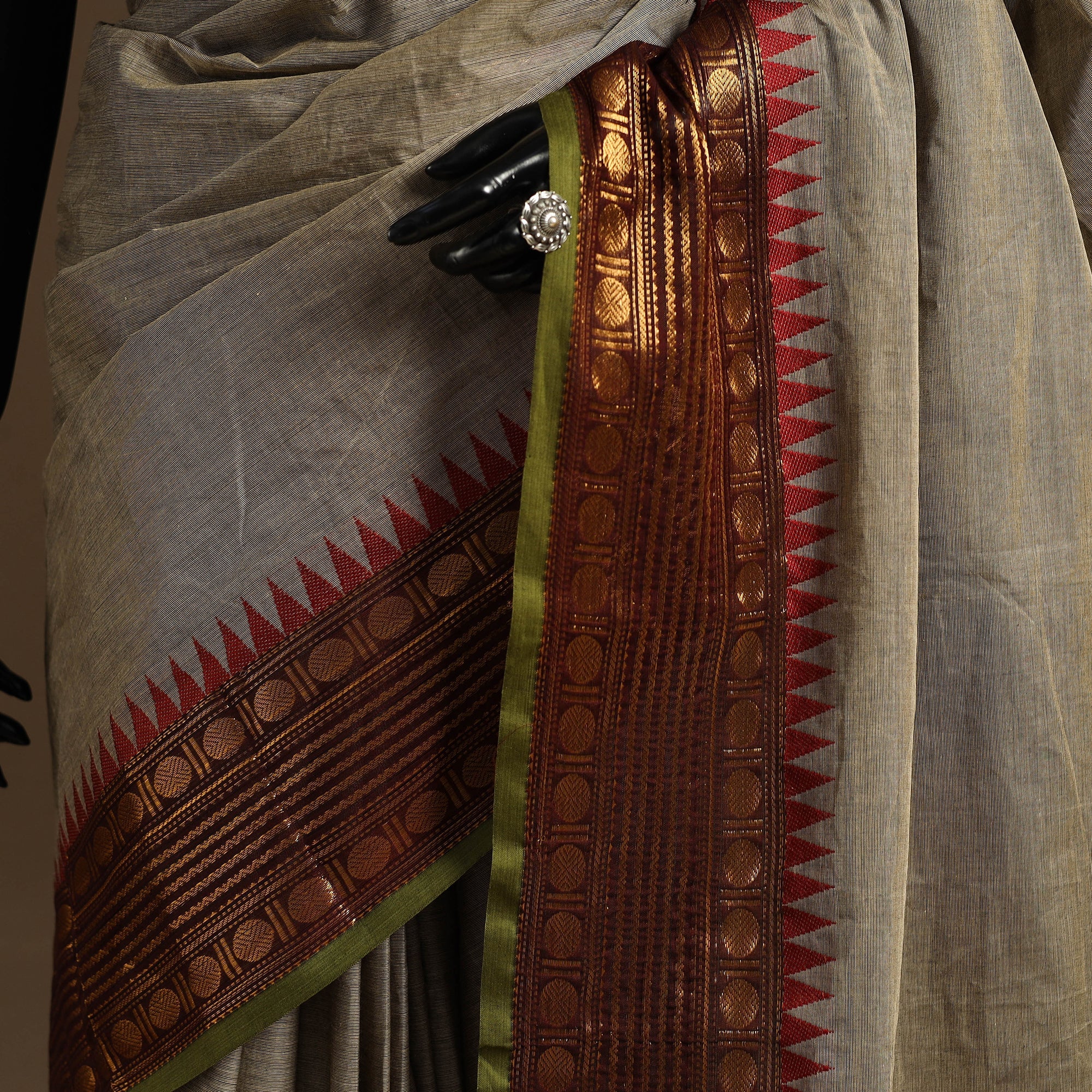 A real silk saree will have slight variations in texture uniformity, which are quite noticeable.