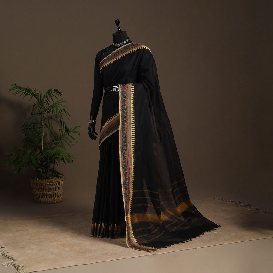 This black chettinad saree, also known as Kandangi, beautifully represents Tamil Nadu’s traditional weaving style. Made from soft, breathable cotton, it features elegant patterns and a graceful border that adds timeless charm. Perfect for everyday wear, office attire, or festive celebrations.