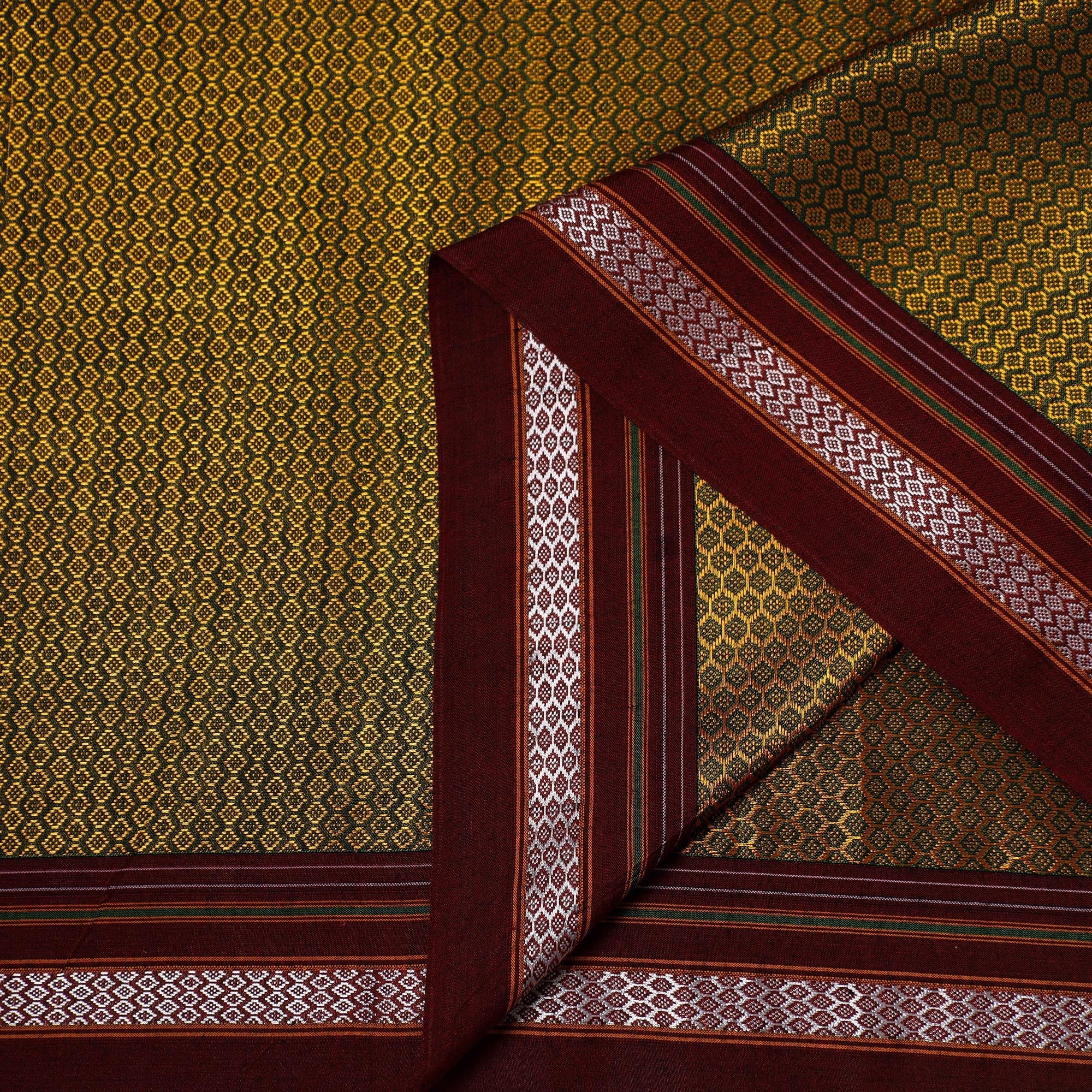 Brown khun cotton fabric, a traditional weave from Karnataka cherished for centuries. With its unique texture and vibrant sheen, it's perfect for crafting blouses and sarees. This distinctive textile continues to represent the artistry of skilled weavers, making it ideal for those who value authentic fabrics.