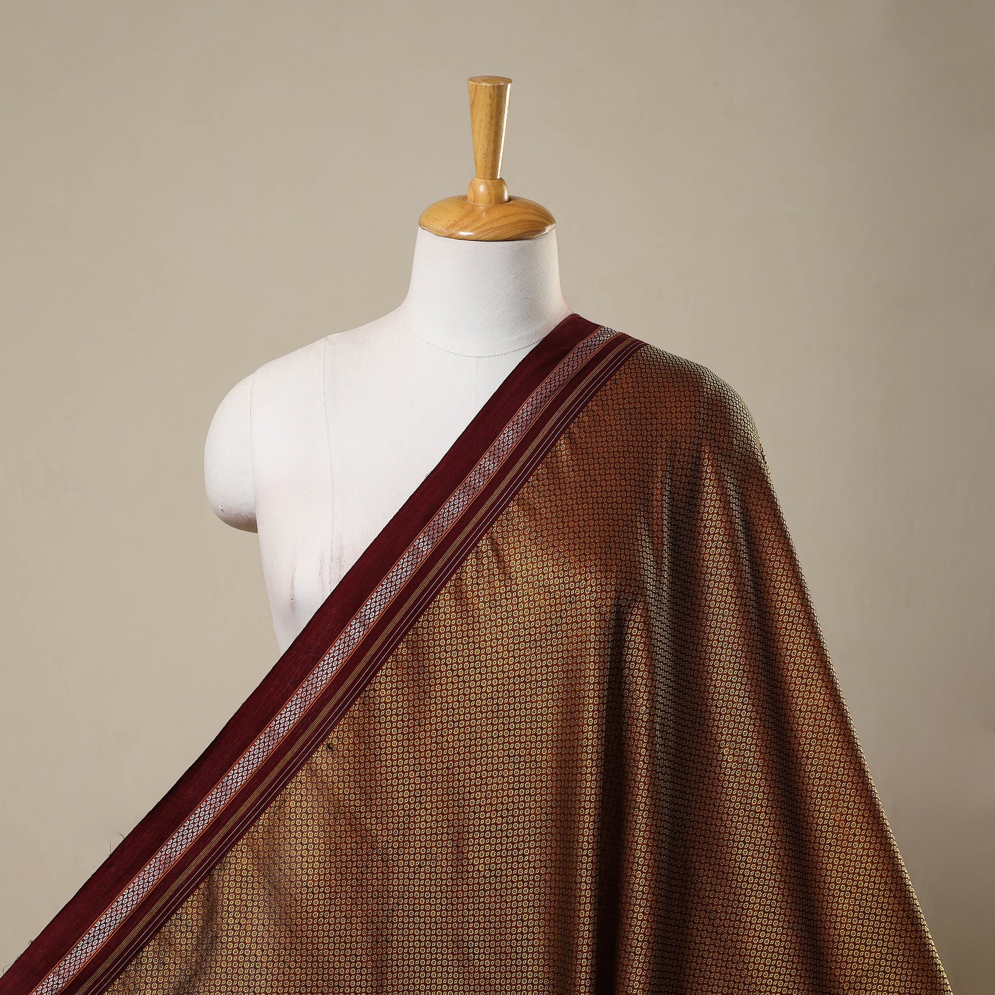 Experience the elegance of brown khun cotton fabric, a traditional Karnataka weave cherished for centuries. This fine-quality khun fabric, with its unique texture and bright glow, its perfect for crafting blouses, kurtas, Khun fabric continues to be a symbol of artisanal skill. Ideal for those who appreciate authentic, handcrafted textiles.