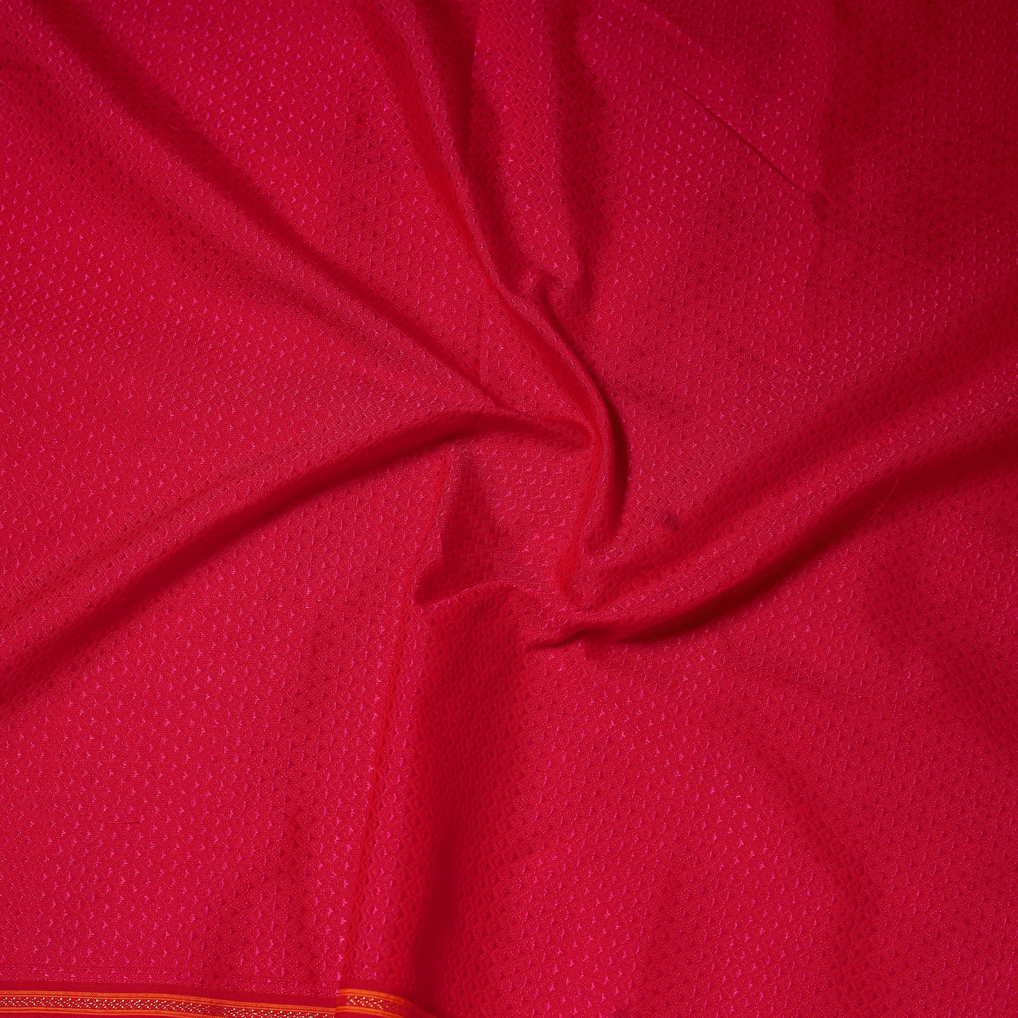 Khun is woven exclusively on a loom in Guledagudd, Bagalkot region, Karnataka. Used only for sari blouses, this handmade fabric is easily recognizable by its small white intricate motif and distinctive reddish-purple border.