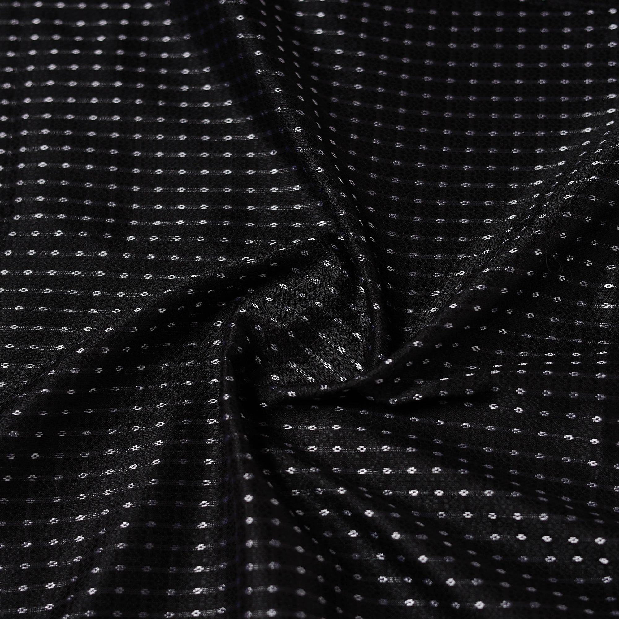 Width : 93 cm. Thread Count : 153, Warp : 88, Weft : 85, GSM : 100 grams. Shrinkage : 0%. Transparency : 0%. Medium fine density fabric suitable for all clothing purpose. (traditionally used for blouses).