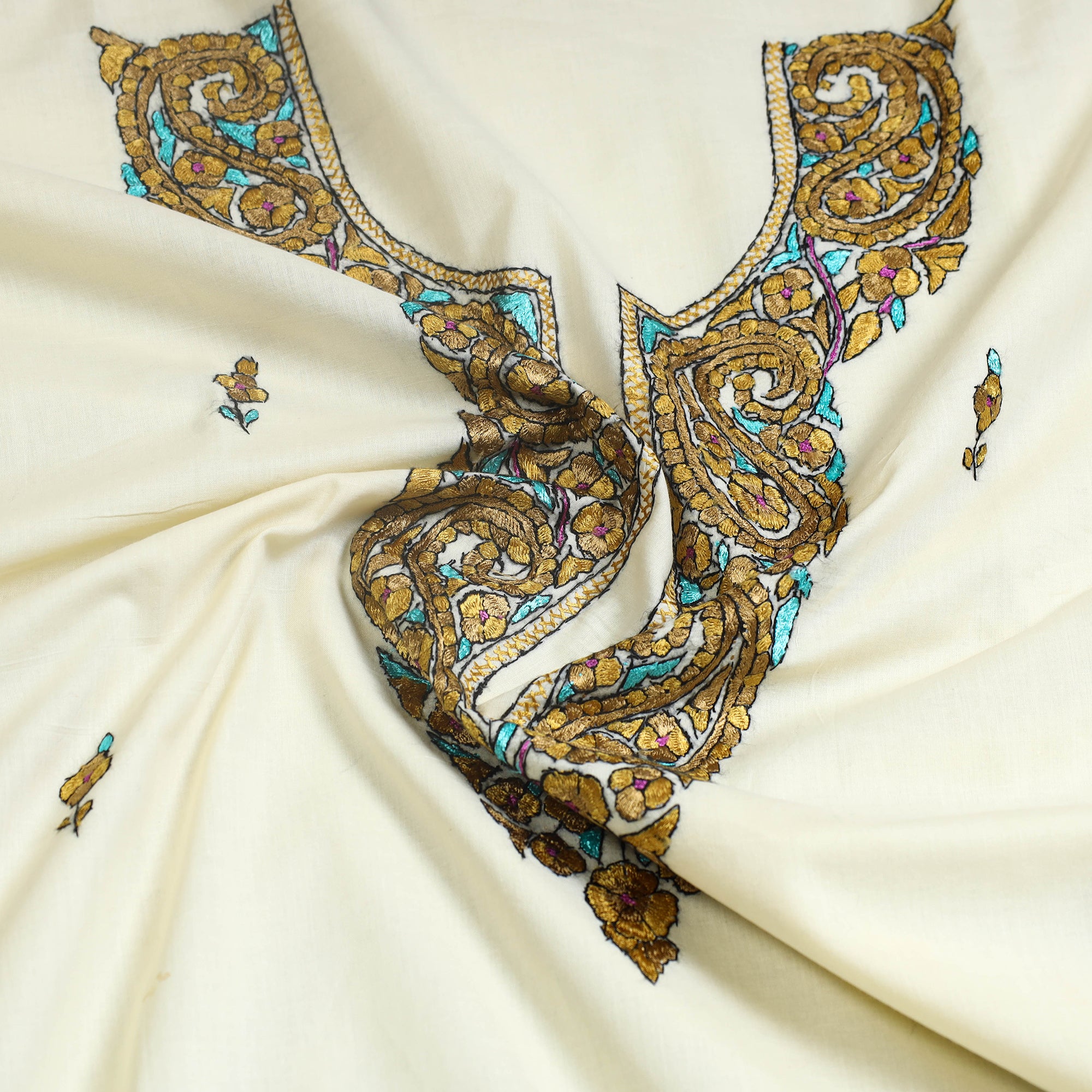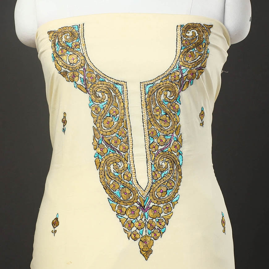 Embrace the beauty of Kashmir with this light yellow kashida hand embroidery cambric cotton kurta material by Zahoor Ahmed. This kurta material features vibrant, intricate designs made using traditional kashidakari techniques, each piece reflects the rich heritage of Kashmir. This kurta material, crafted by skilled artisans, is perfect for creating elegant, unique outfits that stand out. Discover the elegance of this art form and support local craftsmanship.