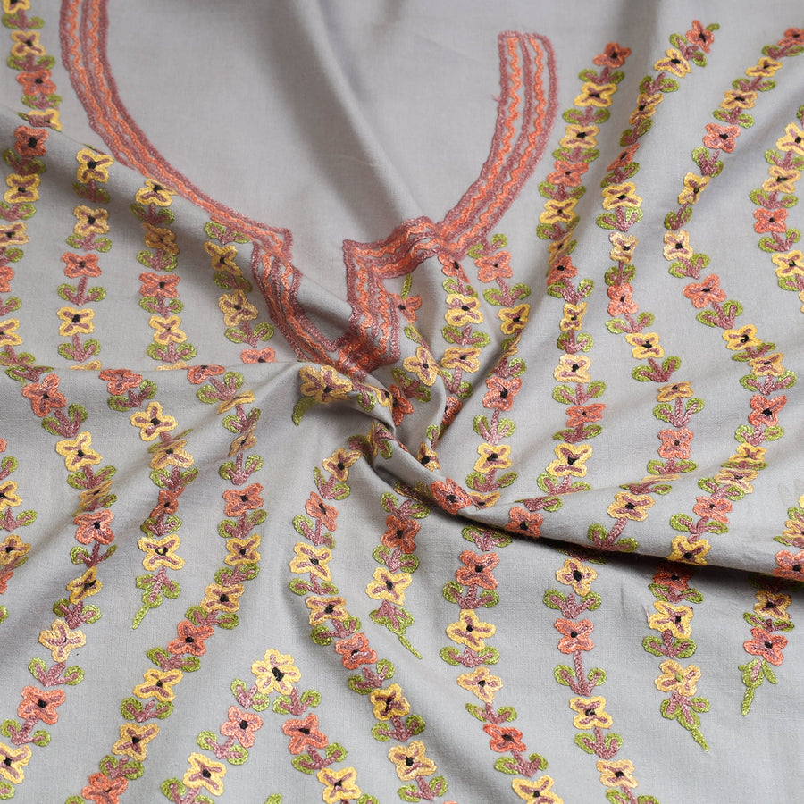 Embrace the beauty of Kashmir with this grey kashida hand embroidery cambric cotton kurta material by Zahoor Ahmed. This kurta material features vibrant, intricate designs made using traditional kashidakari techniques, each piece reflects the rich heritage of Kashmir. This kurta material, crafted by skilled artisans, is perfect for creating elegant, unique outfits that stand out. Discover the elegance of this art form and support local craftsmanship.