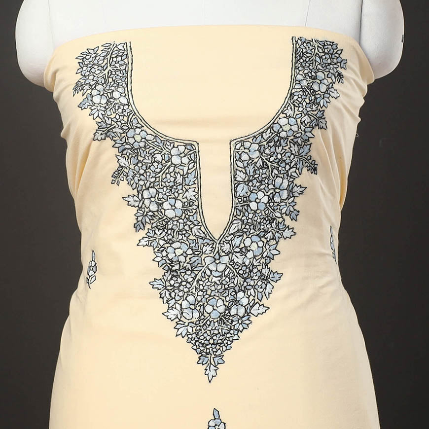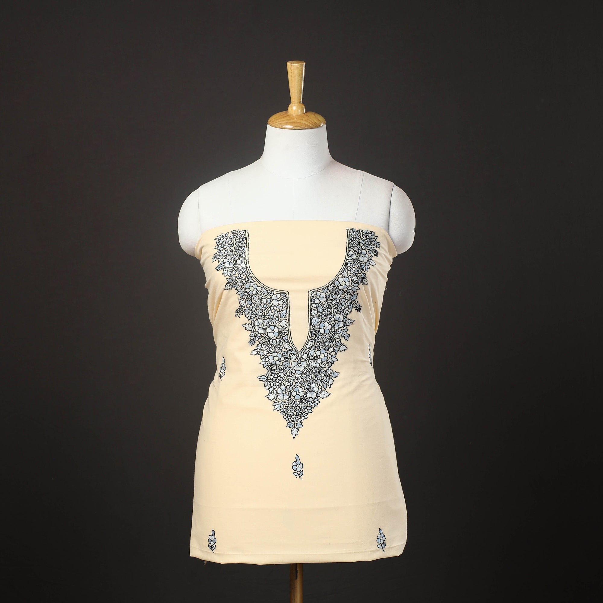 Embrace the beauty of Kashmir with this beige kashida hand embroidery cambric cotton kurta material by Zahoor Ahmed. This kurta material features vibrant, intricate designs made using traditional kashidakari techniques, each piece reflects the rich heritage of Kashmir. This kurta material, crafted by skilled artisans, is perfect for creating elegant, unique outfits that stand out. Discover the elegance of this art form and support local craftsmanship.