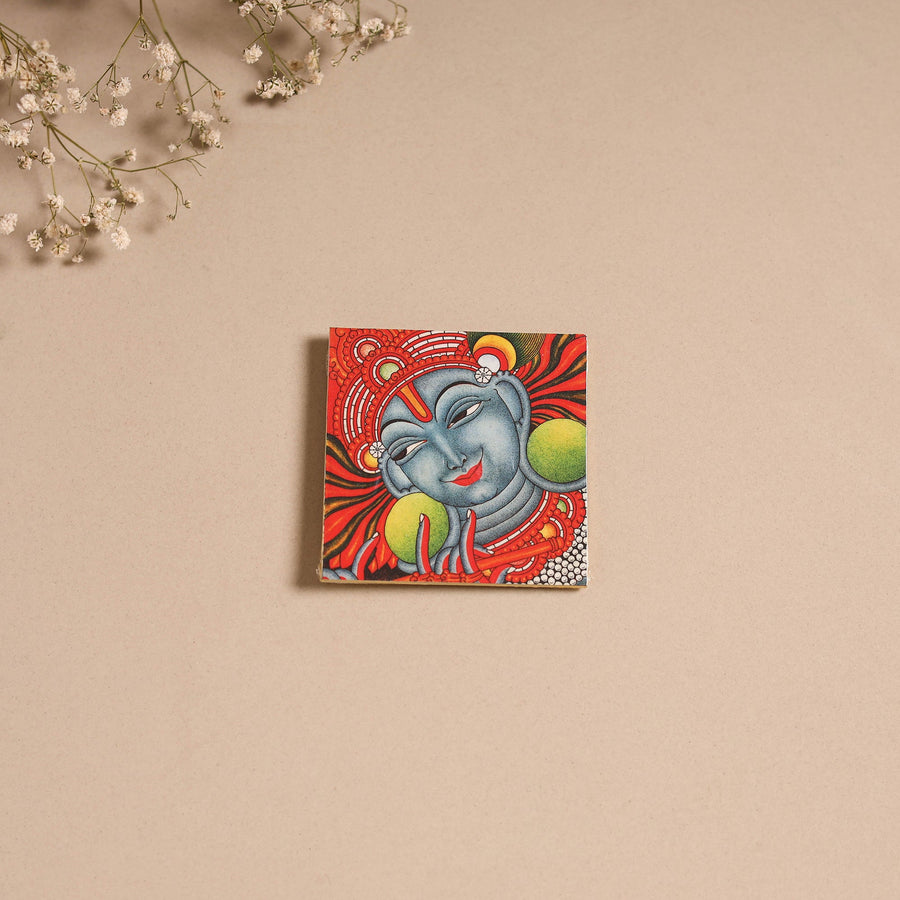 Bring home a touch of Kerala’s heritage with this handpainted fridge magnet. Crafted on durable wood, it features traditional kerala mural art painted with vibrant acrylic colours. A perfect keepsake or gift, this magnet adds cultural charm and artistic beauty to your everyday spaces.