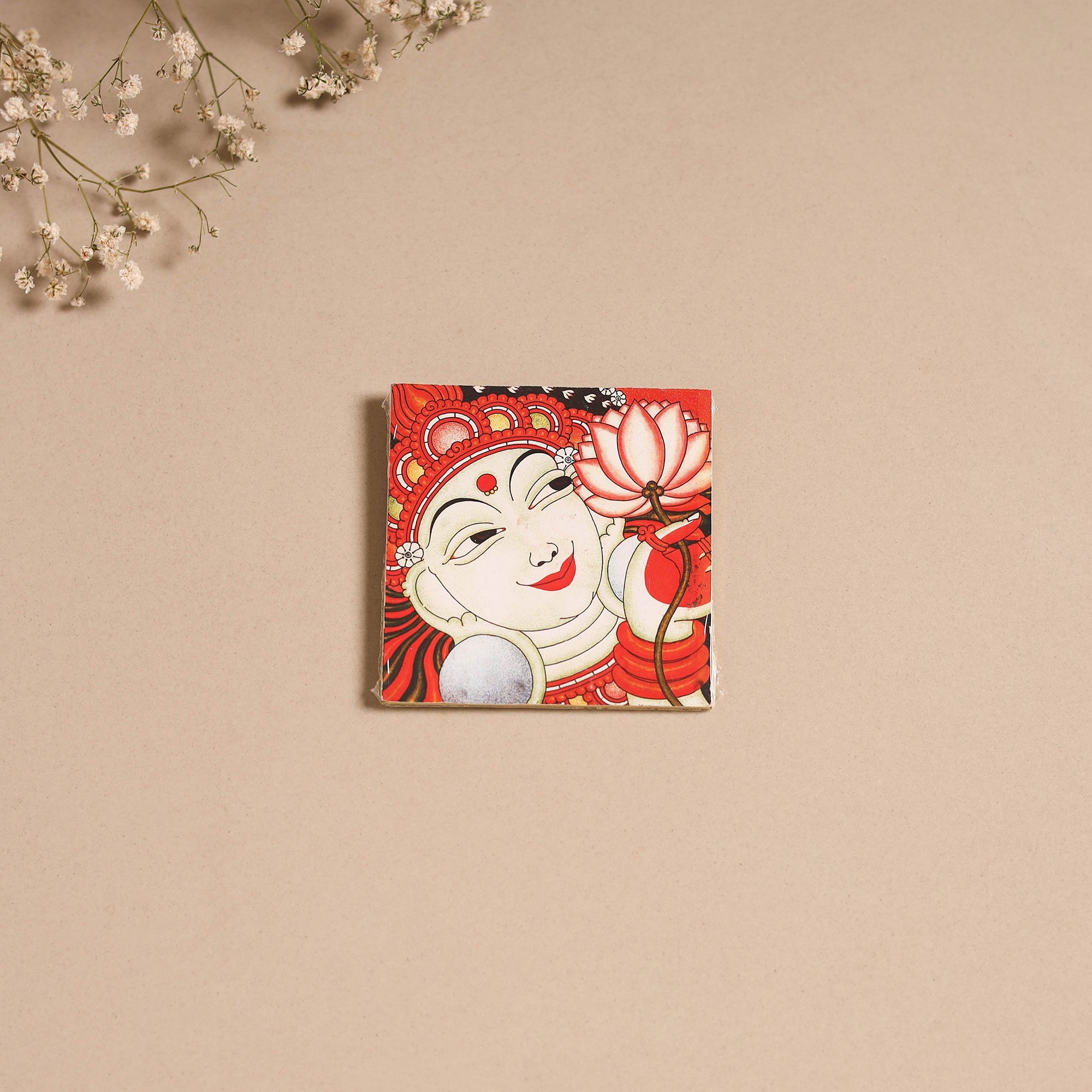 Bring home a touch of Kerala’s heritage with this handpainted fridge magnet. Crafted on durable wood, it features traditional kerala mural art painted with vibrant acrylic colours. A perfect keepsake or gift, this magnet adds cultural charm and artistic beauty to your everyday spaces.