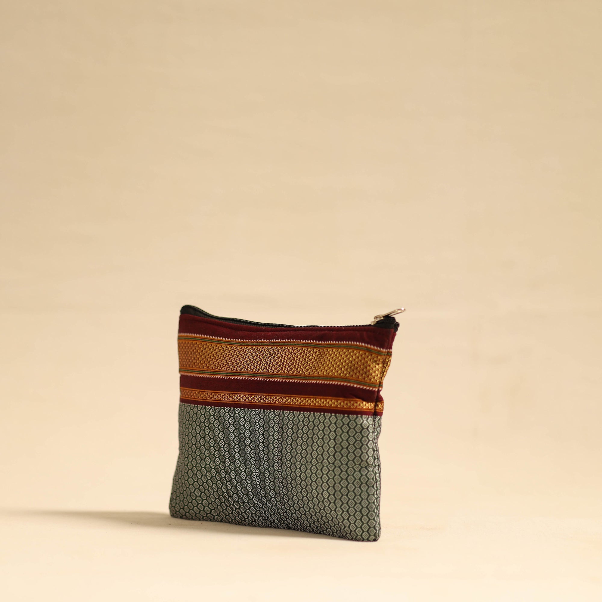 Keep your essentials organized with this grey khun fabric quilted cotton utility pouch crafted from durable khun fabric. Featuring a secure zip closure and a foam padded interior for protection it offers ample space for everyday items. Versatile and functional this pouch is ideal for all your needs.