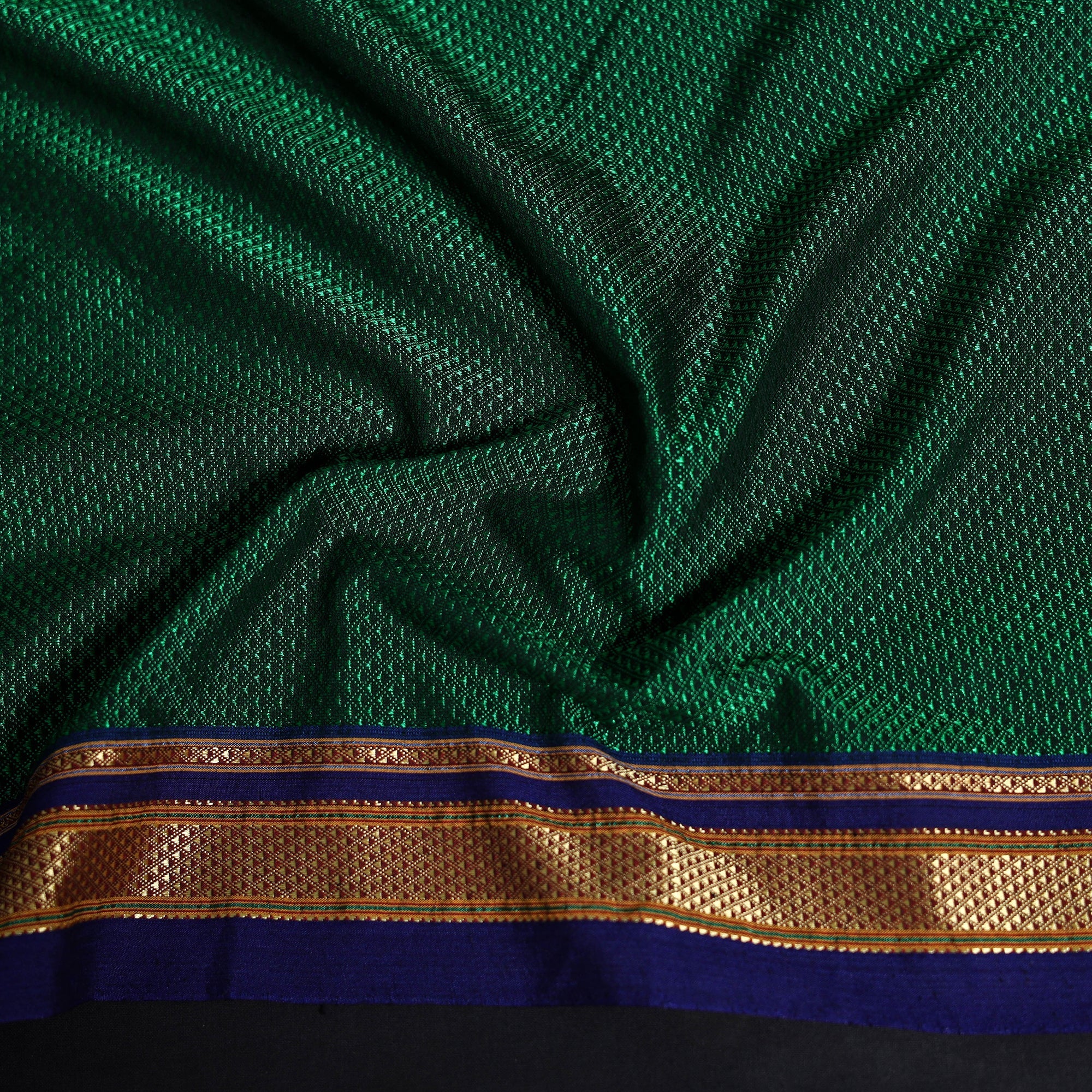 Green khun cotton blouse piece from Karnataka. Khun weaving is a centuries-old craft known for its intricate textures and remarkable durability. Perfect to tailor in your own style, it’s a beautiful choice for festive occasions as well as everyday saree looks.