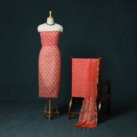 Hand block jaipur print kota doria cotton 3pc unstitched dress material blends traditional artistry with everyday comfort. It is created using the traditional hand block printing technique of Jaipur, Rajasthan. This age-old method is practised by skilled artisans who use hand-carved wooden blocks to produce fine, detailed patterns on the fabric. The kurta fabric and dupatta are made from airy Kota Doria, an age-old textile from the Kota district of Rajasthan known for its finely interwoven check patterns and sheer, lightweight texture. The soft cotton bottom ensures comfort throughout the day, making this set suitable for both daily wear and festive occasions.