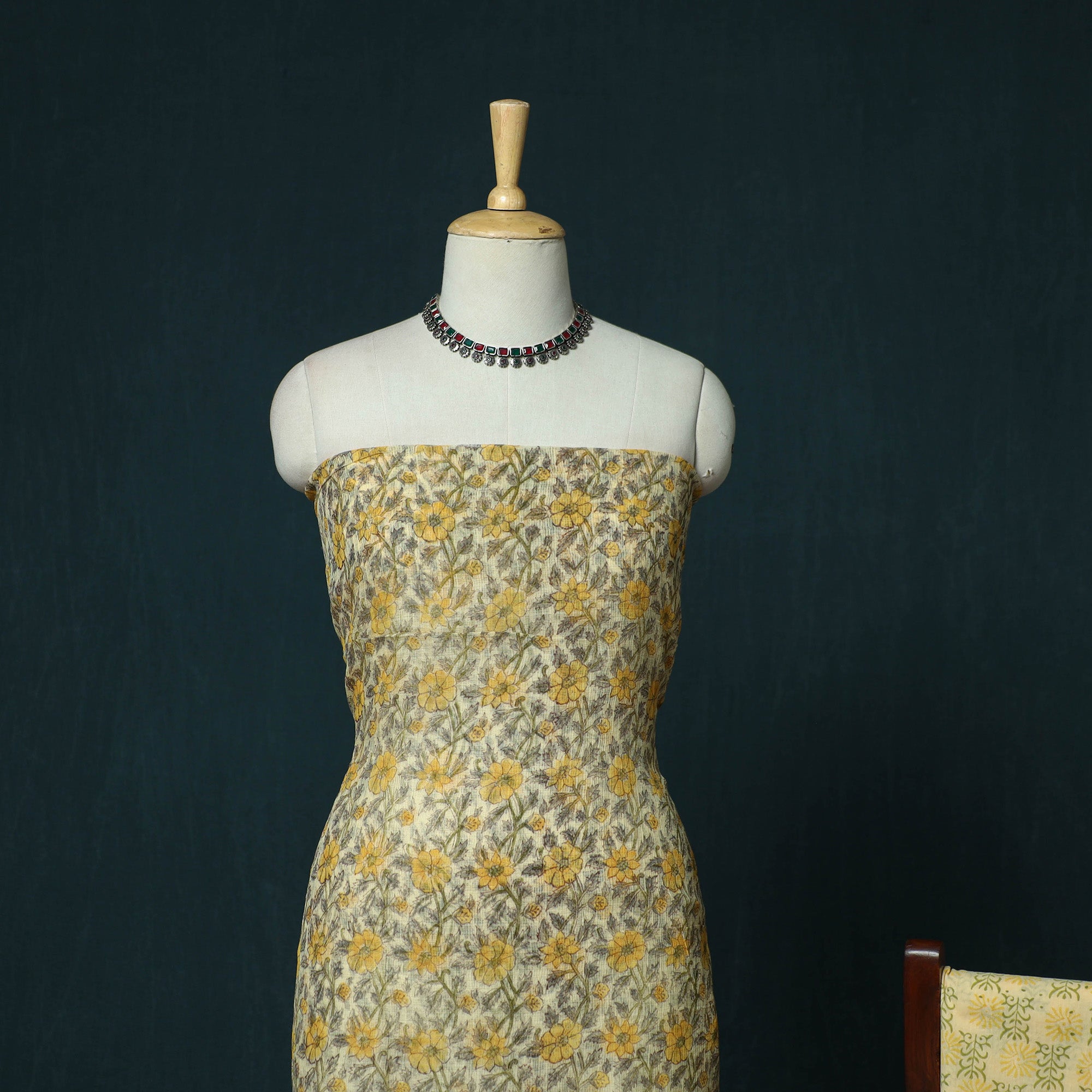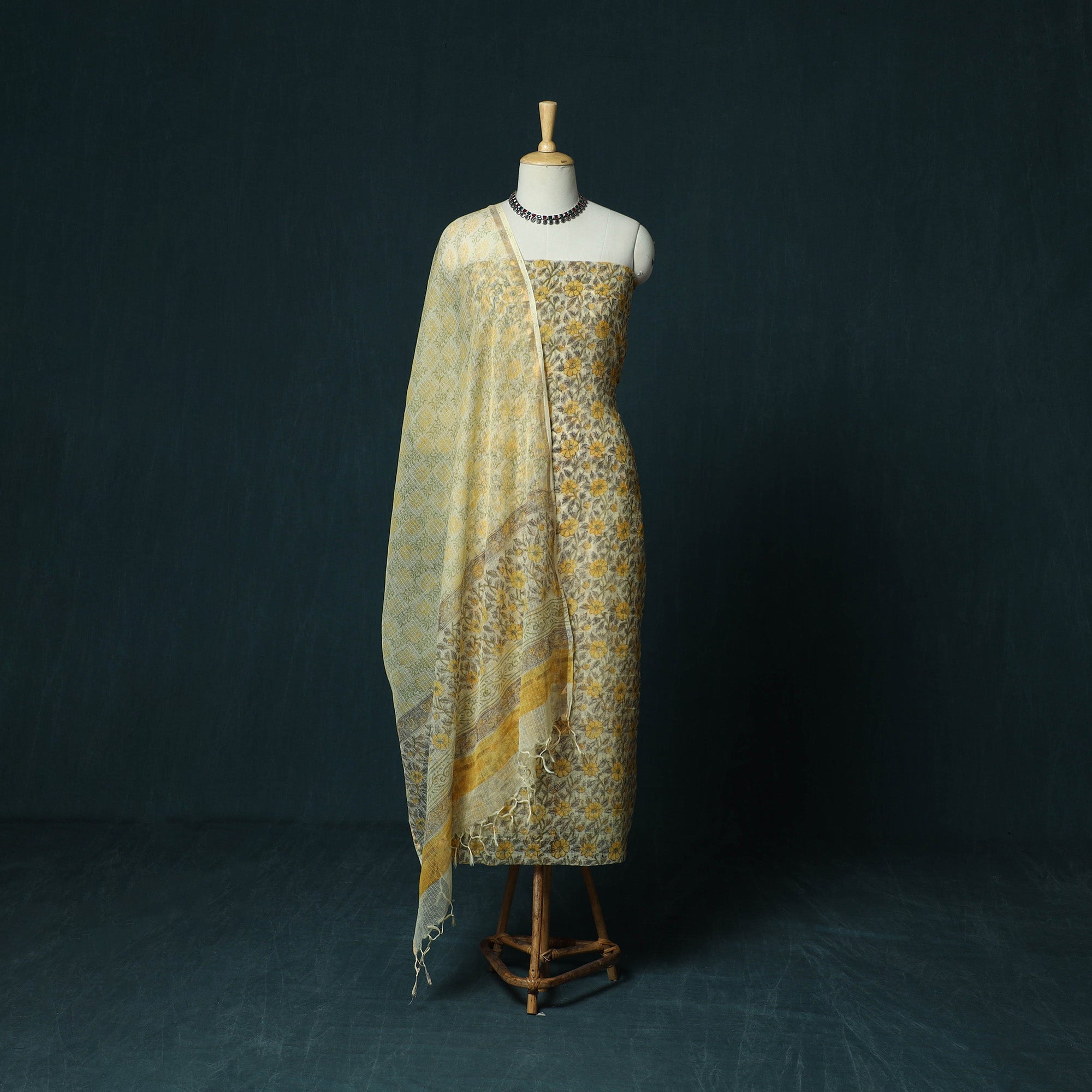 Hand block sanganeri print kota doria cotton 3pc unstitched dress material blends traditional artistry with everyday comfort. It is created using the traditional hand block printing technique of Sanganer, a historic town in the southern part of Jaipur, Rajasthan. Practised for over 500 years, this craft is carried forward by skilled artisans, with techniques passed down through generations. Fine patterns are produced using intricately hand-carved wooden blocks. The kurta fabric and dupatta are made from airy Kota Doria, an age-old textile from the Kota district of Rajasthan known for its finely interwoven check patterns and sheer, lightweight texture. The soft cotton bottom ensures comfort throughout the day, making this set suitable for both daily wear and festive occasions.