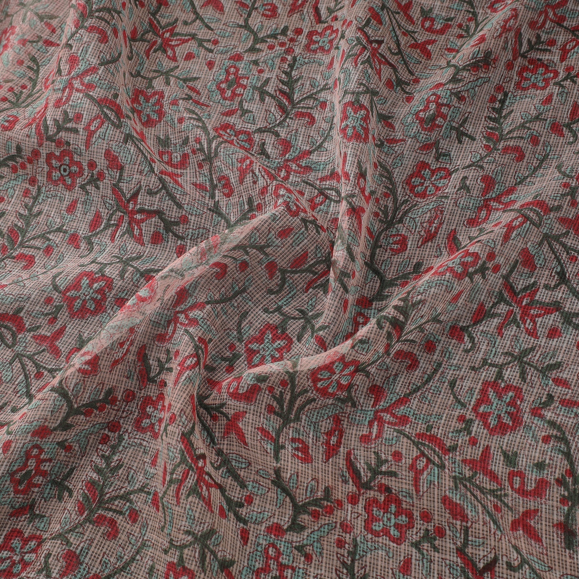 • Kota doria cotton hand sanganeri fabric 02 - handcrafted