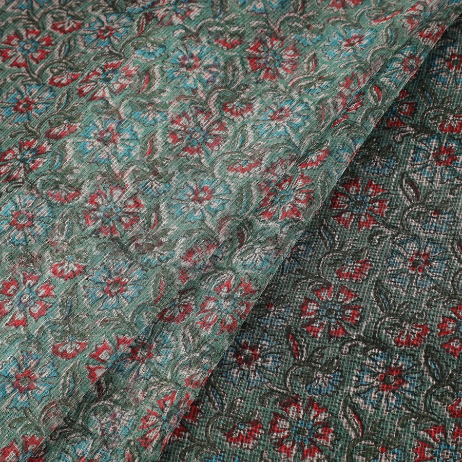 Green - Kota Doria Cotton Hand Block Sanganeri Print Fabric 07