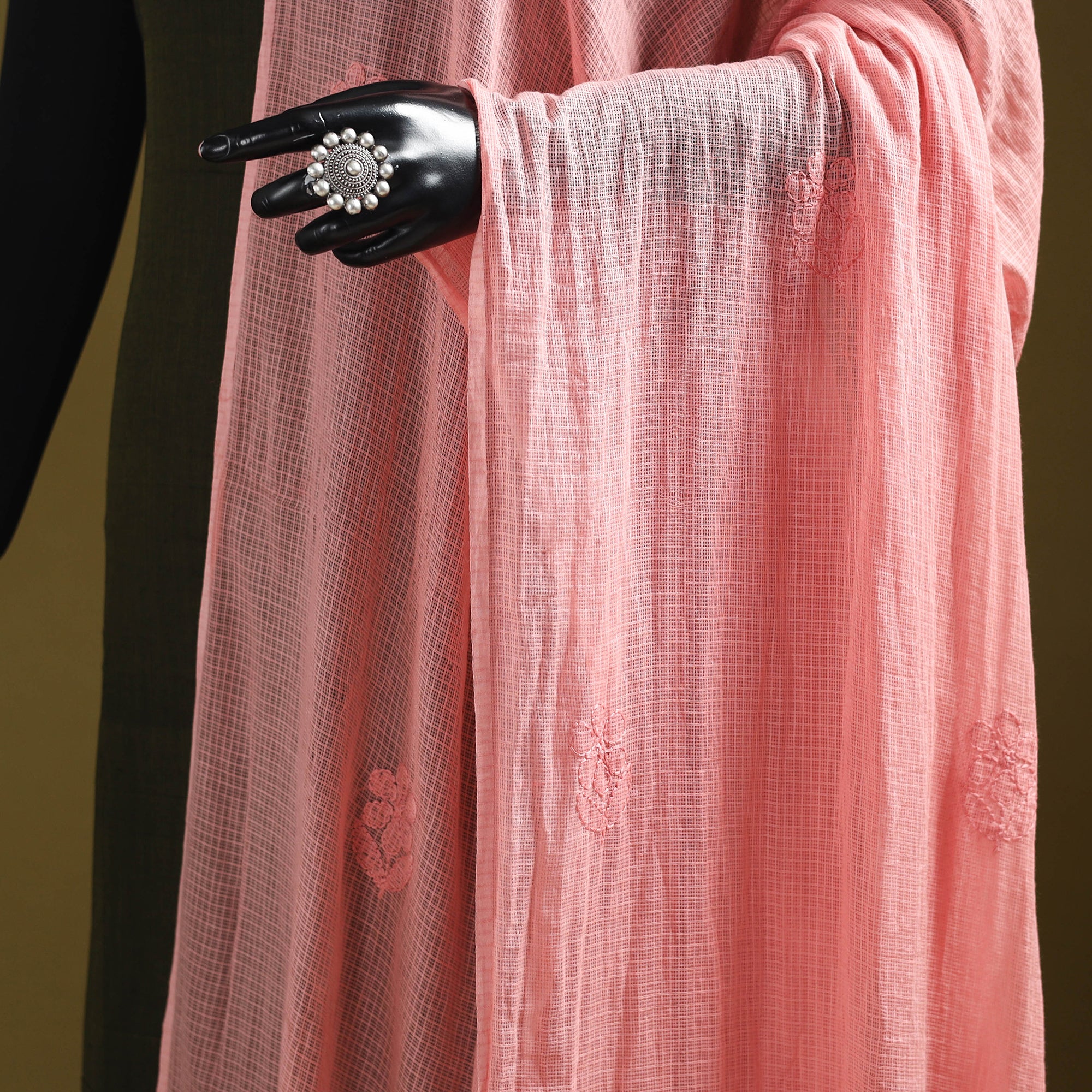 This peach kota doria cotton dupatta showcases exquisite lucknowi chikankari embroidery, crafted by the skilled artisans of Lucknow. The airy, lightweight weave of Kota fabric drapes effortlessly, while the delicate handwork adds timeless elegance. Ideal for festive gatherings, office wear, casual outings, or family occasions, this dupatta beautifully balances comfort with tradition, making it a versatile and graceful choice for every wardrobe.