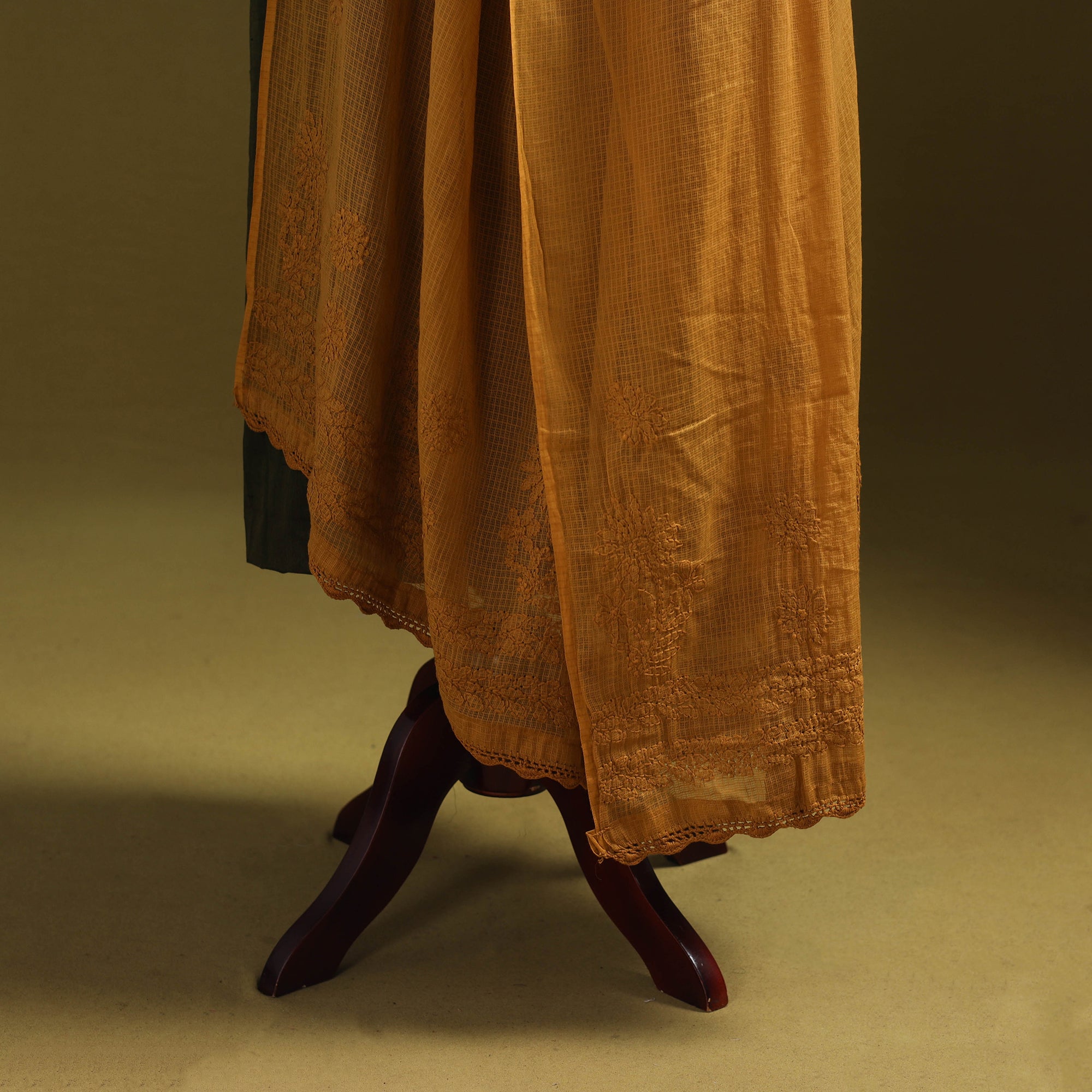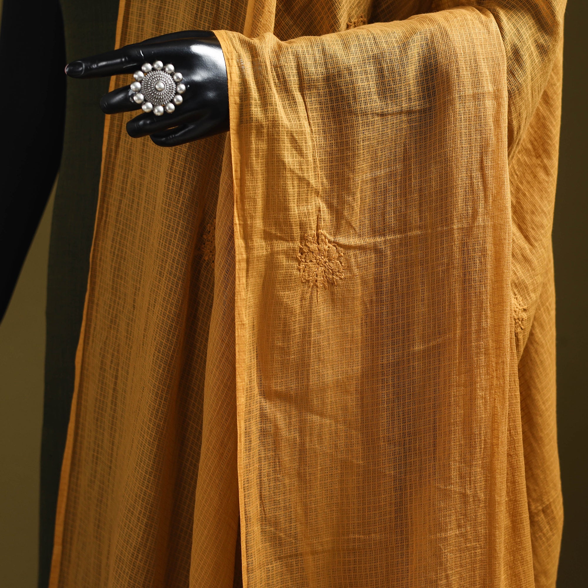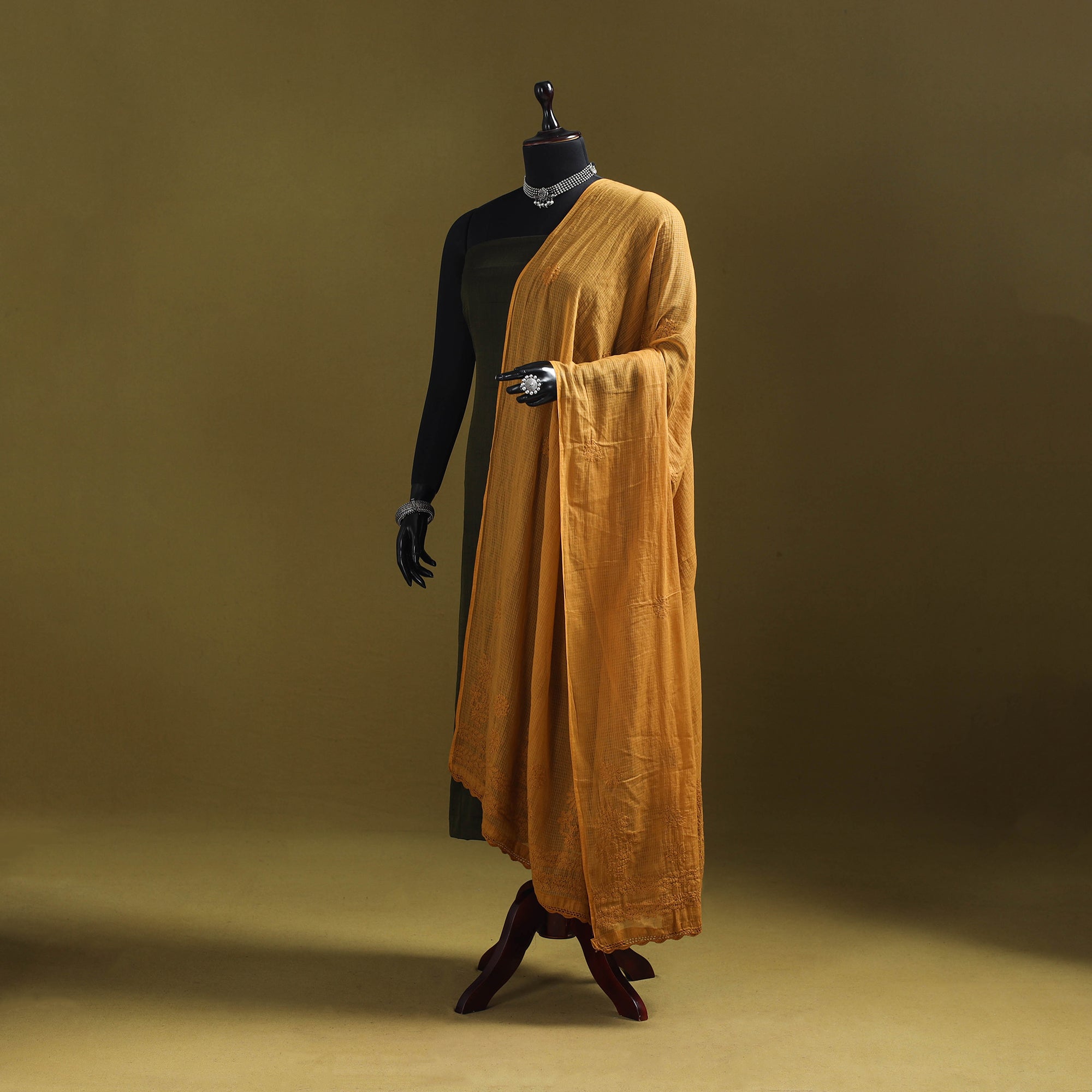 This yellow kota doria cotton dupatta showcases exquisite lucknowi chikankari embroidery, crafted by the skilled artisans of Lucknow. The airy, lightweight weave of Kota fabric drapes effortlessly, while the delicate handwork adds timeless elegance. Ideal for festive gatherings, office wear, casual outings, or family occasions, this dupatta beautifully balances comfort with tradition, making it a versatile and graceful choice for every wardrobe.